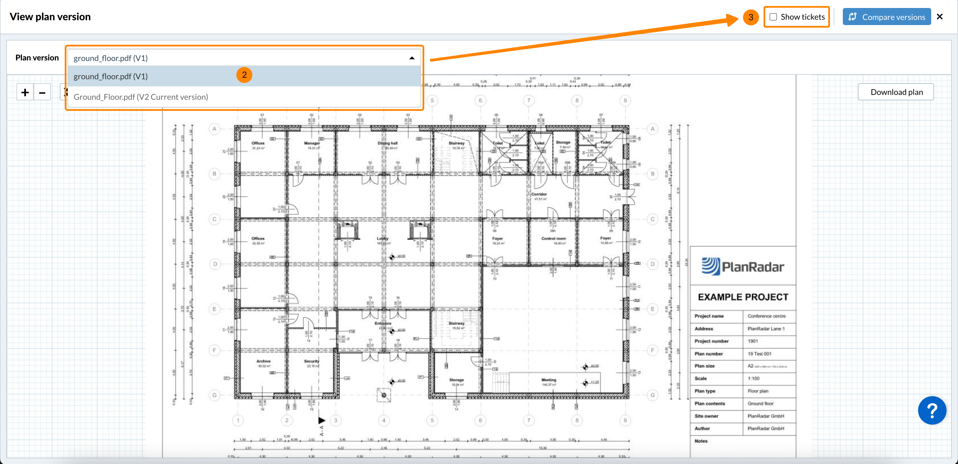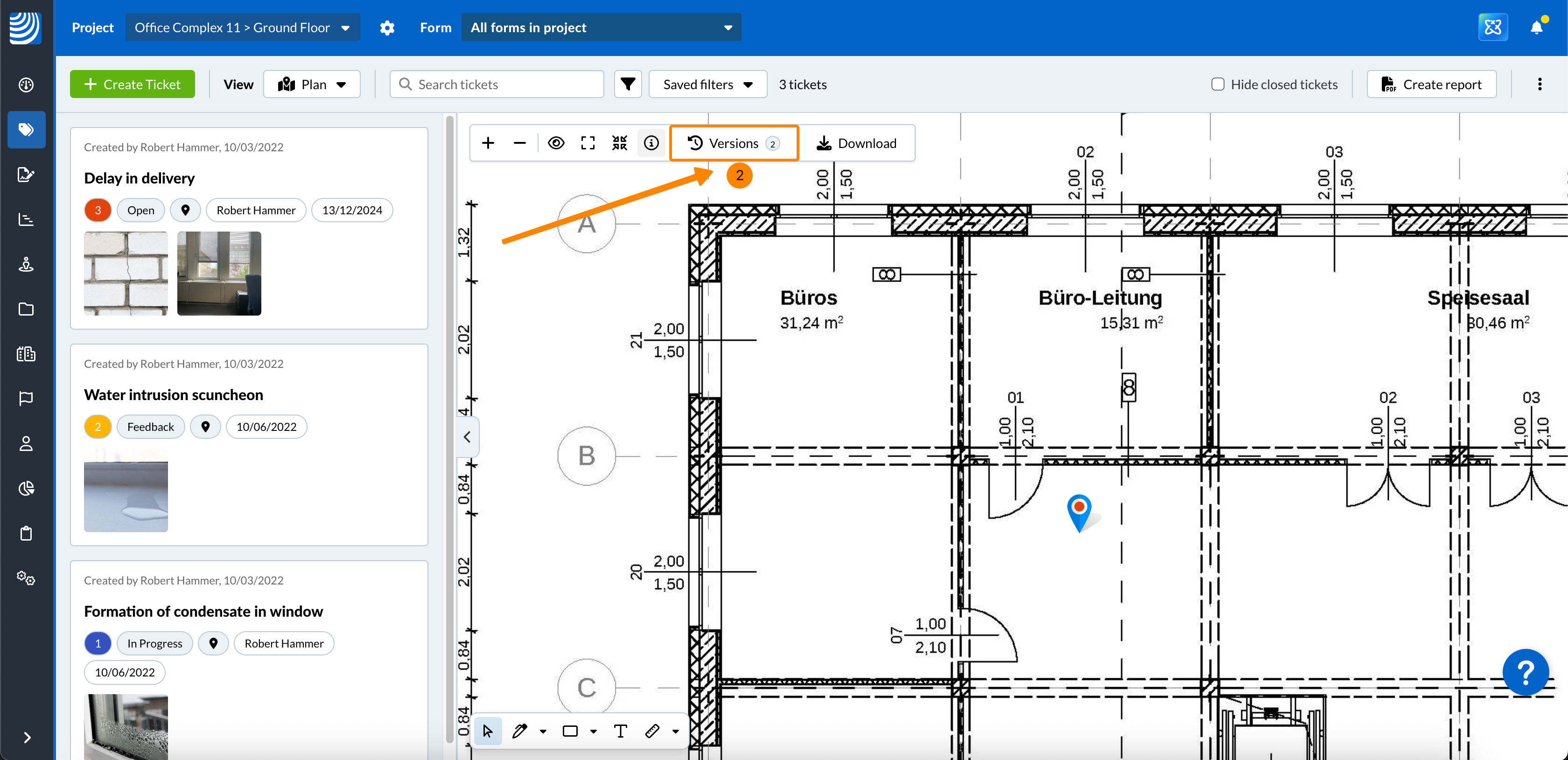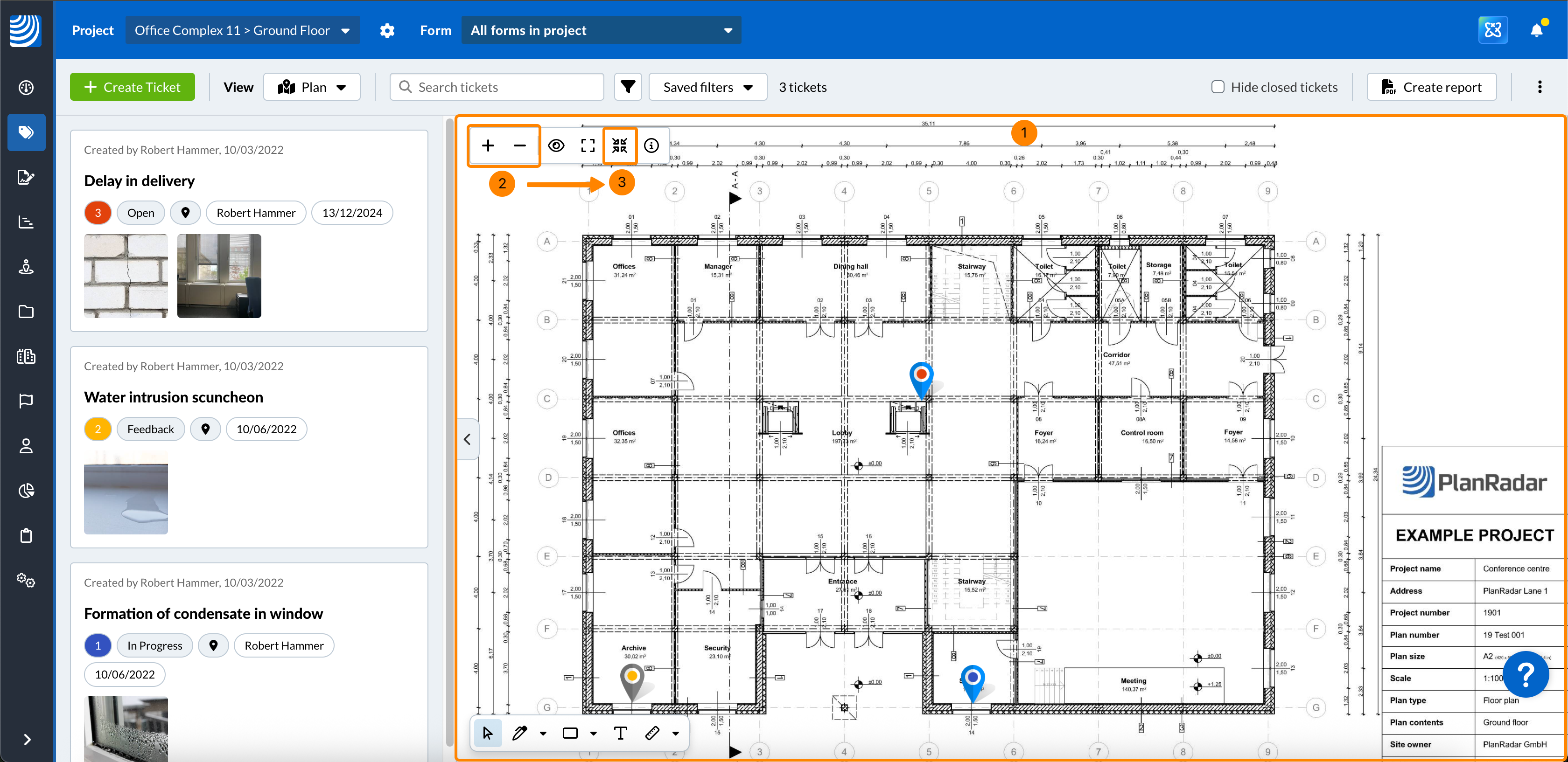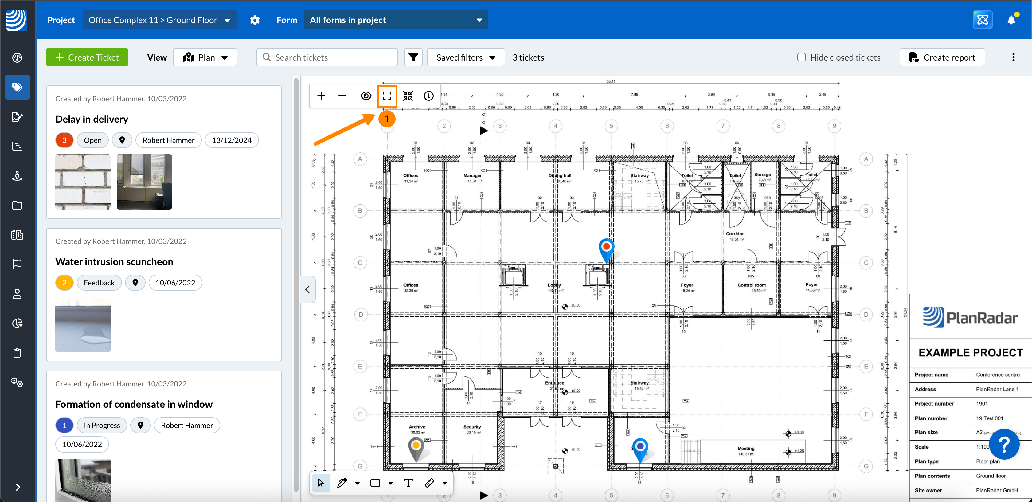 Neobavezno: Označite potvrdni okvir Prikaži ticketi kako biste prikazali ticketi pinove na planu.