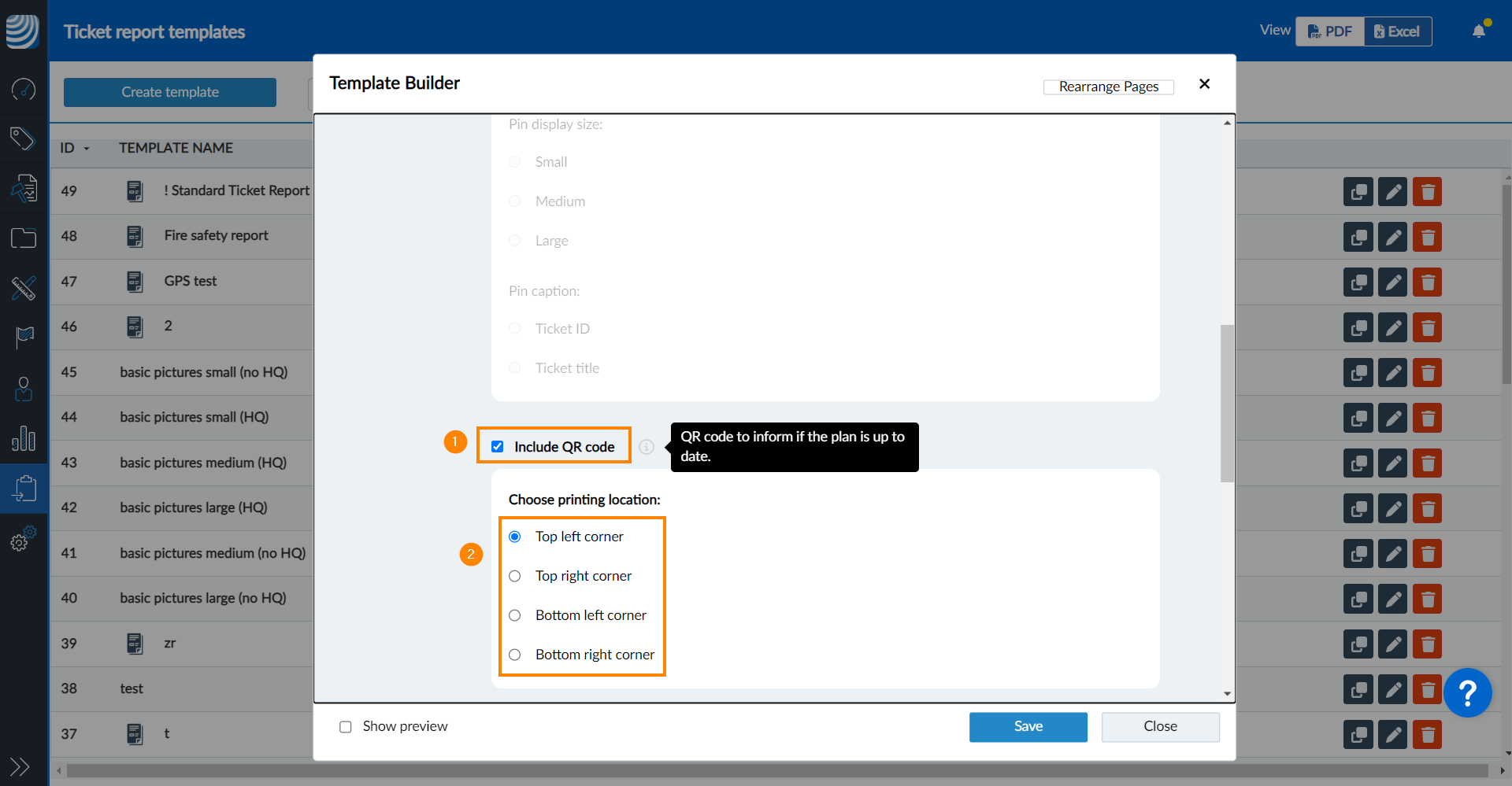 Možete uključiti QR kodove na planove tako da korisnici mogu provjeriti najnoviju verziju plana pomoću QR koda prilikom skeniranja koda.