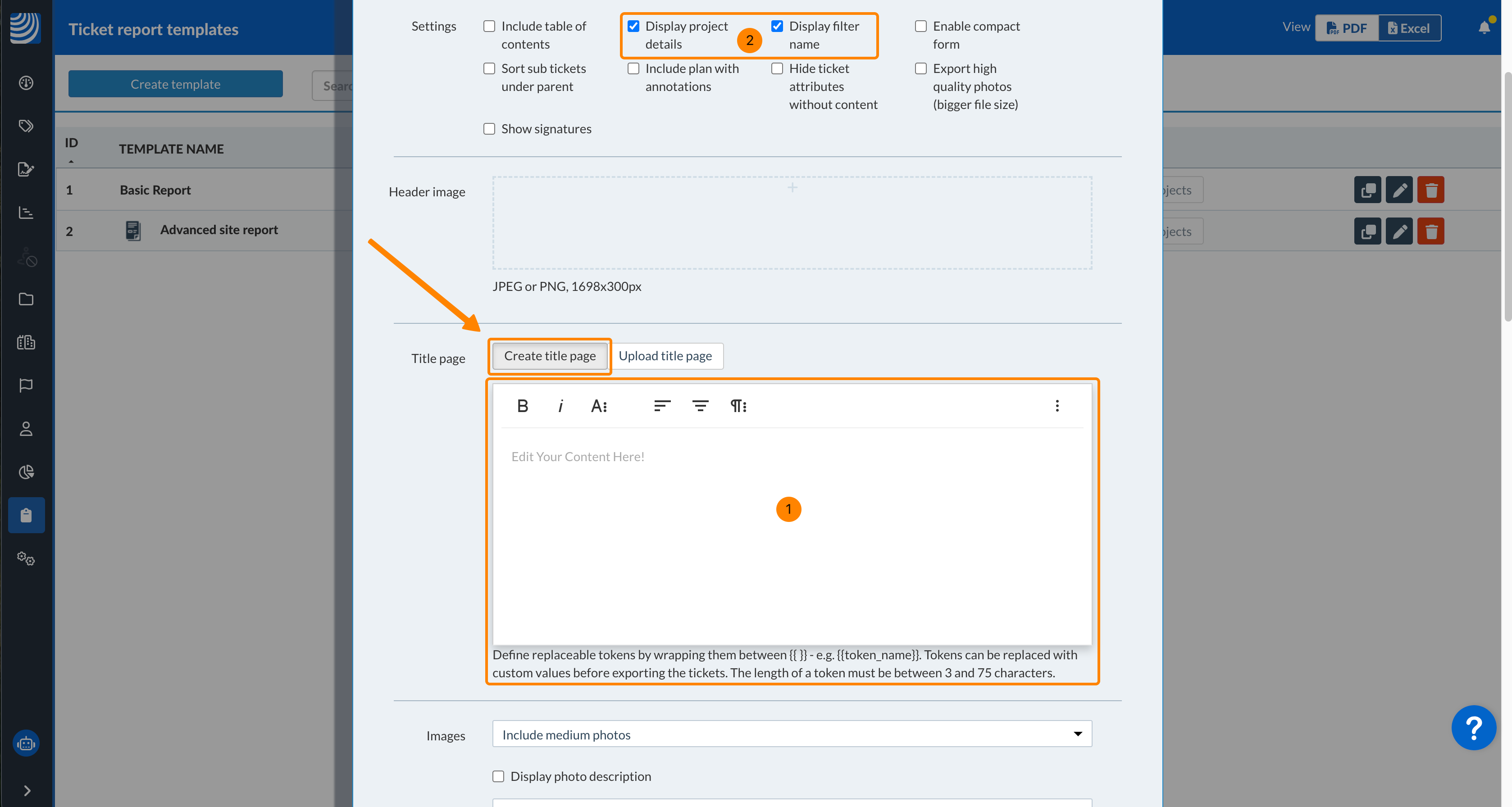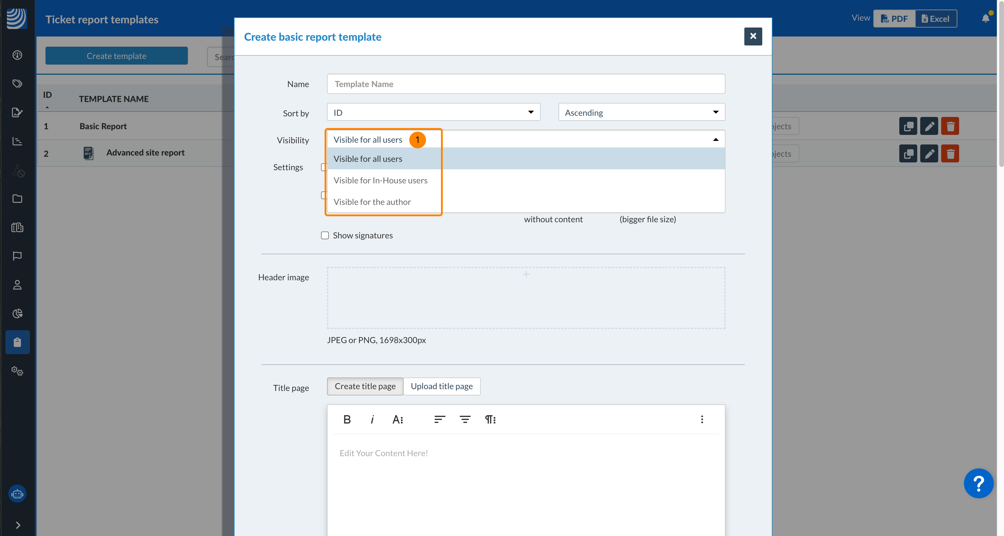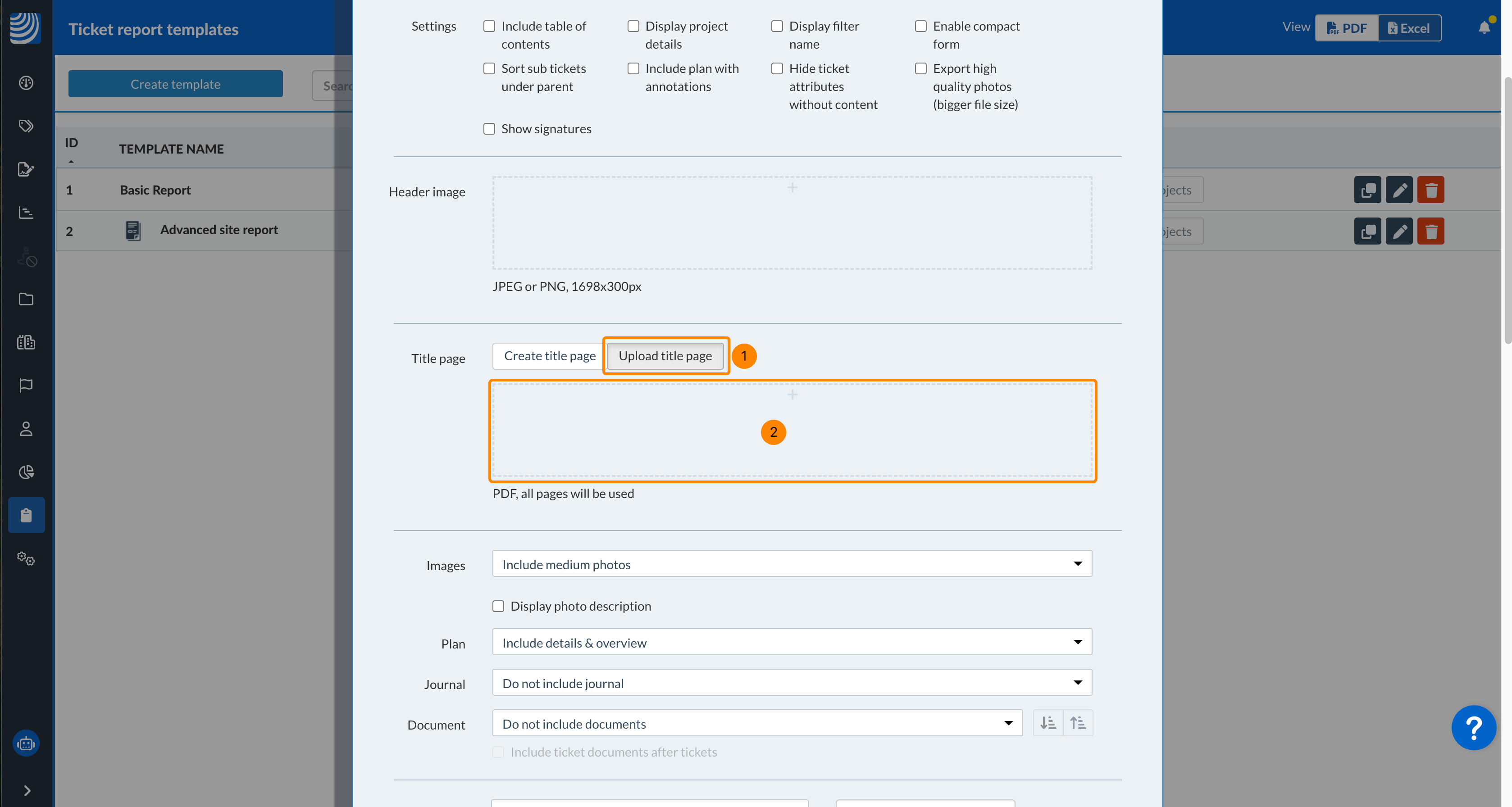 - Izvoz fotografija visoke kvalitete (veća veličina datoteke): Fotografije priložene tiketima imat će veću kvalitetu po cijeni veće veličine datoteke PDF izvješća o tiketima.