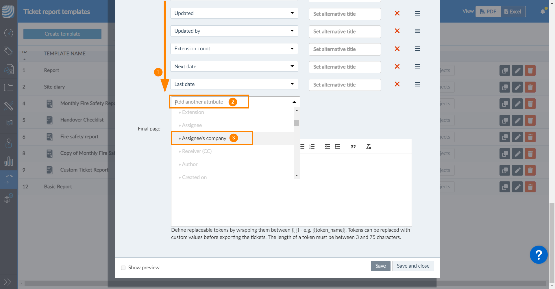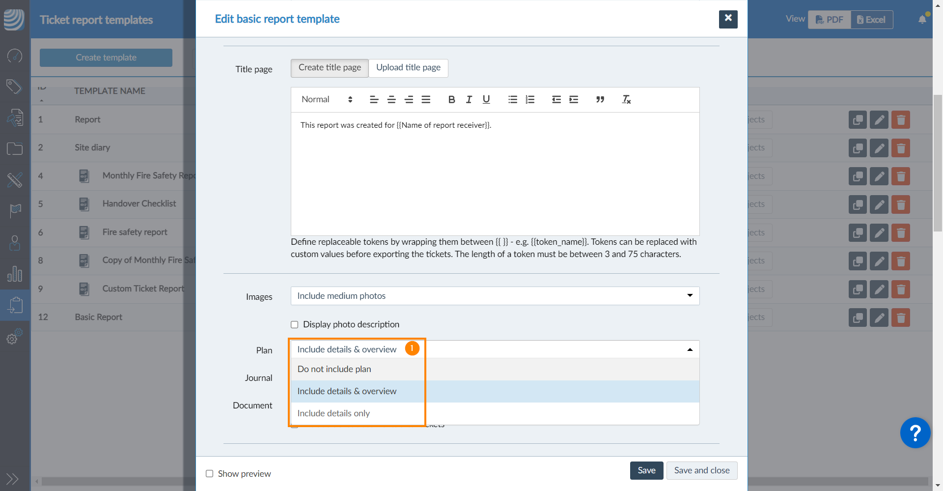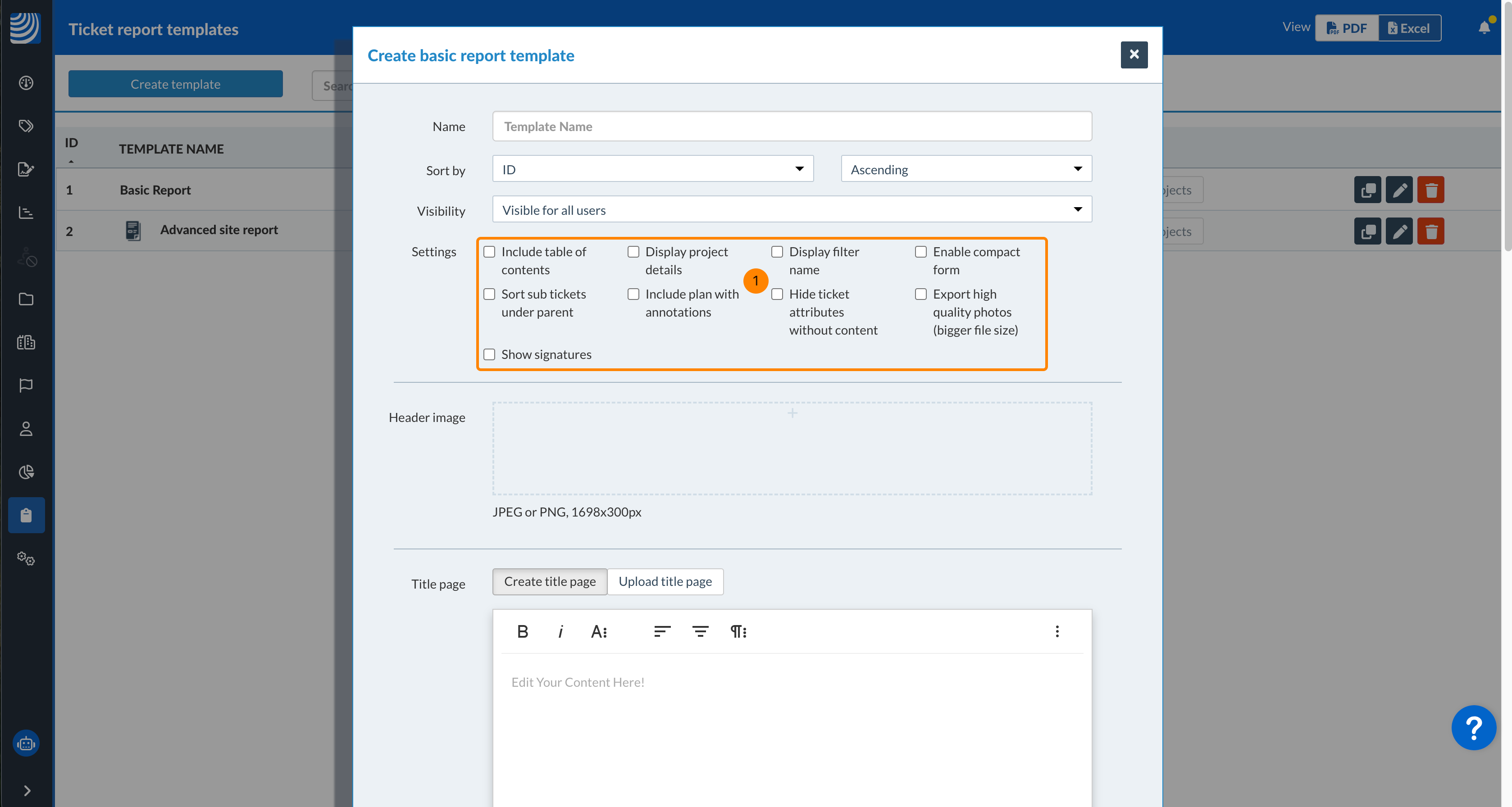- Izvoz fotografija visoke kvalitete (veća veličina datoteke): Fotografije priložene tiketima imat će veću kvalitetu po cijeni veće veličine datoteke PDF izvješća o tiketima.