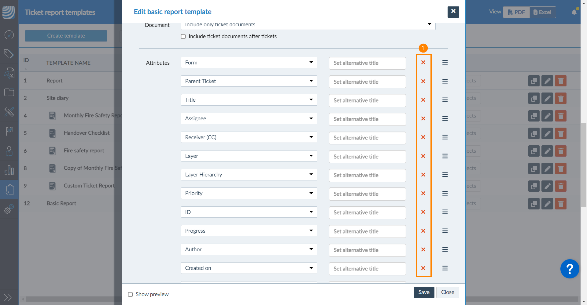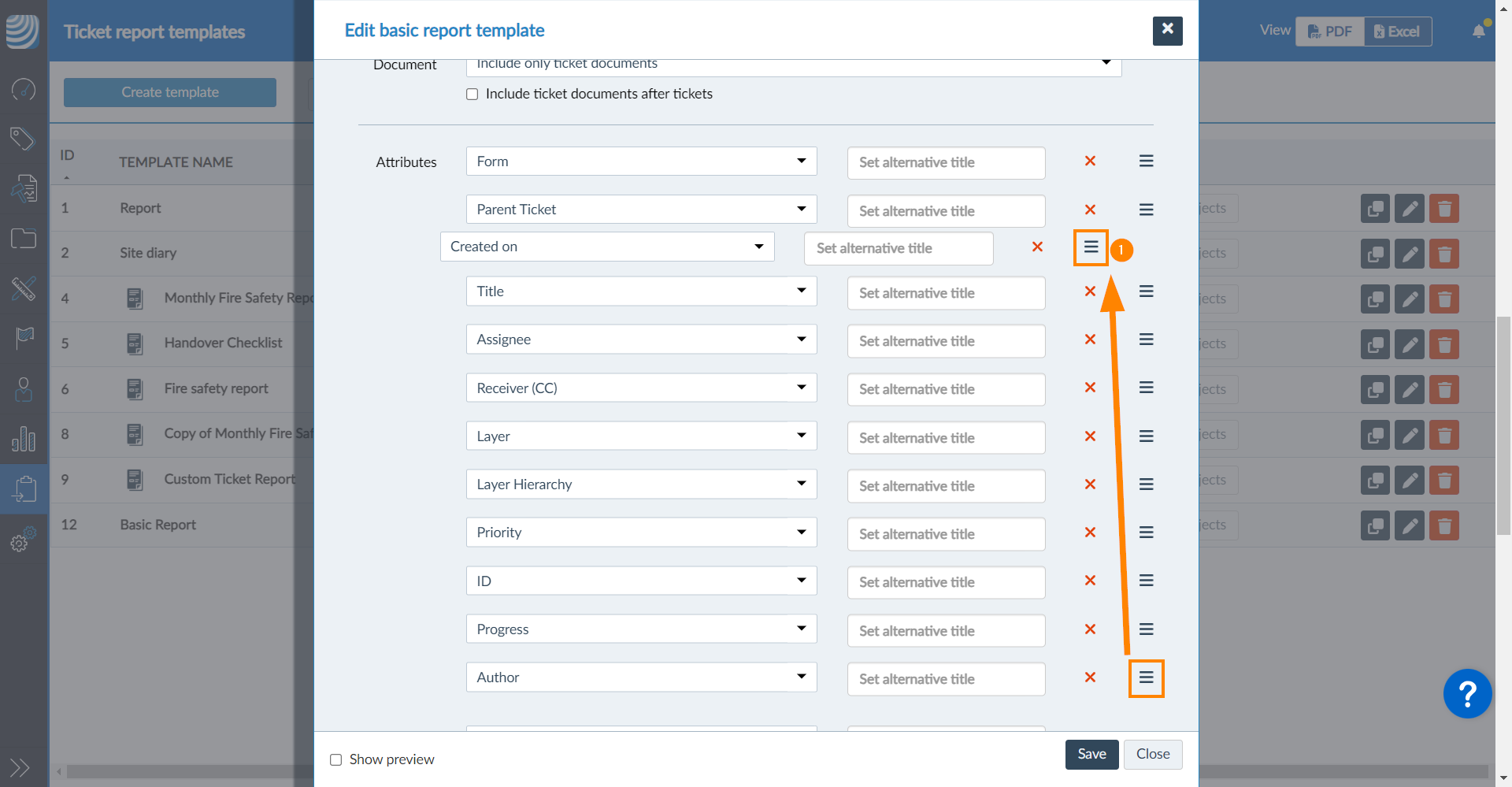 Prema zadanim postavkama, atributi uključuju zadana polja obrasca karte i povezane podatke. Također je moguće dodati prilagođena polja obrasca tiketa, promijeniti redoslijed ili postaviti alternativne naslove.