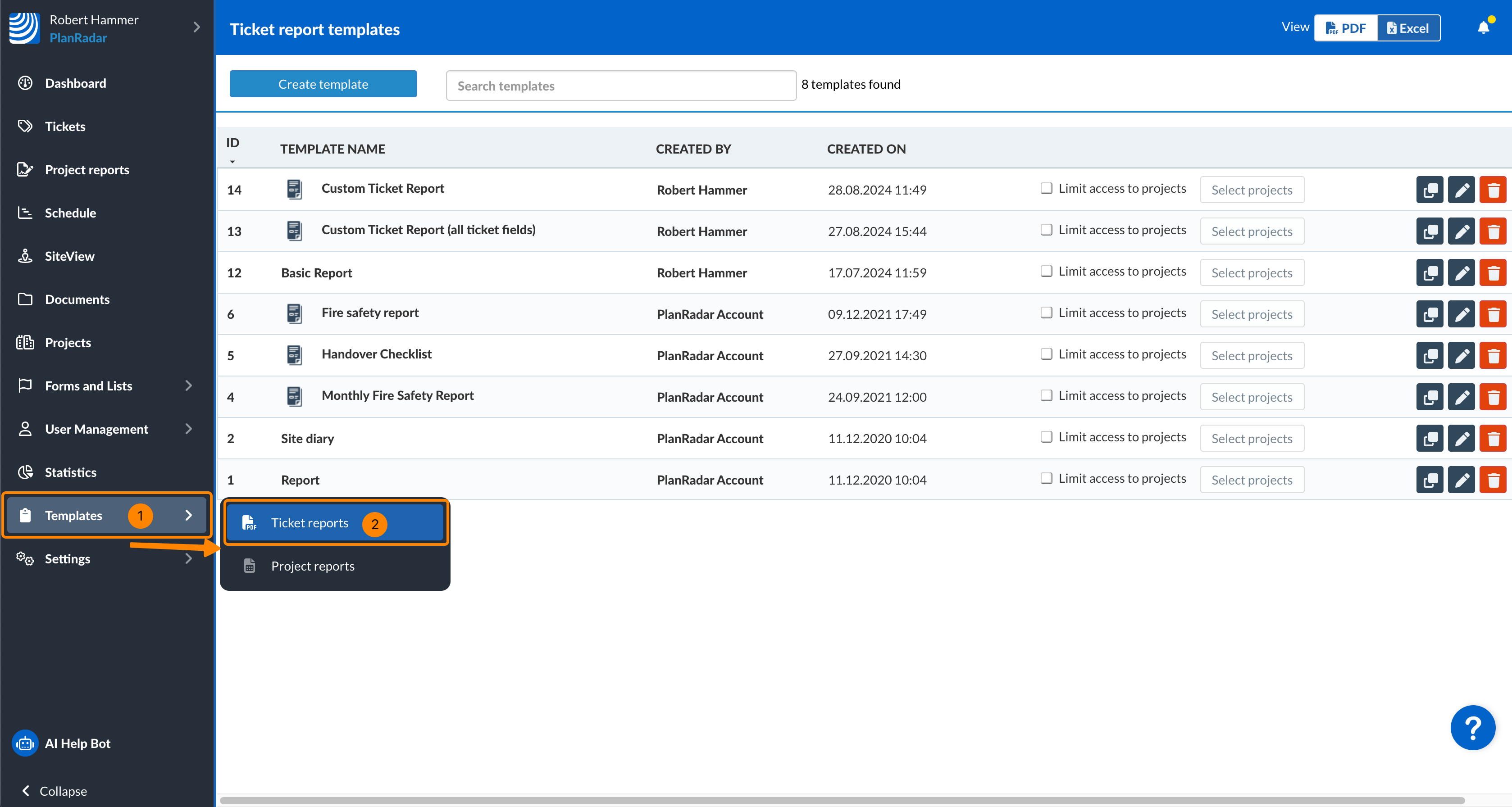 Za izradu predložaka izvješća o ulaznicama potreban vam je interni korisnik s korisničkim dopuštenjem 'Predlošci'. Pročitajte više u Dozvolama.