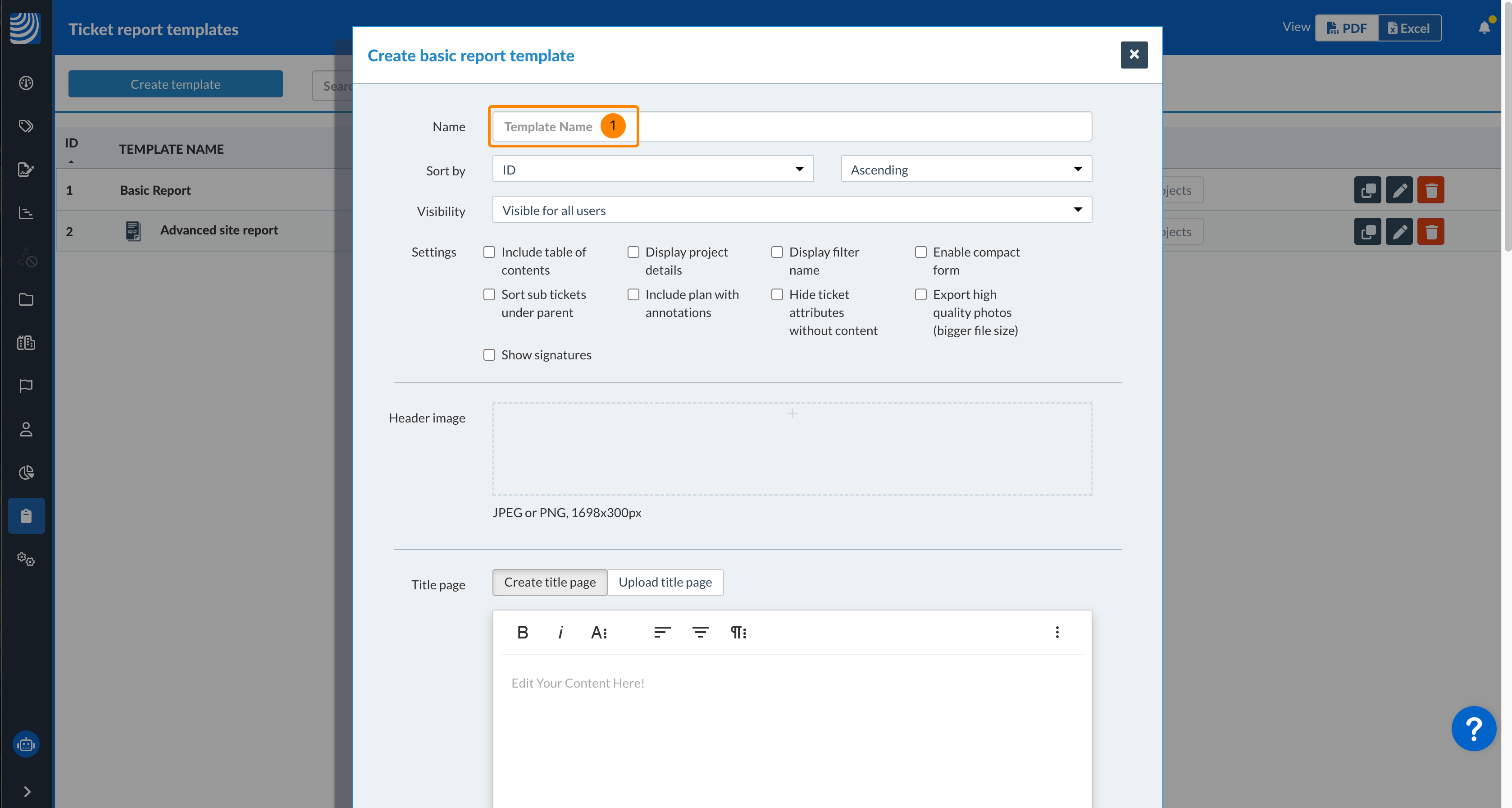 Za izradu osnovnog predloška za PDF izvješća o ulaznicama: