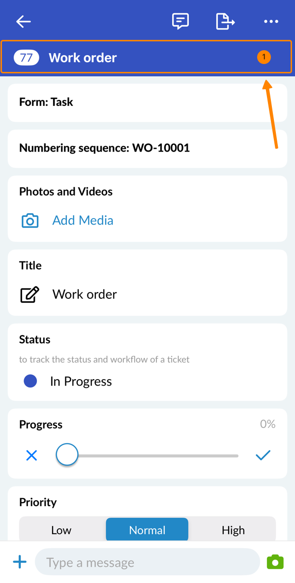 - U početku nakon otvaranja tiketa, zaglavlje tiketa je tanko i prikazuje samo ID i naslov tiketa.