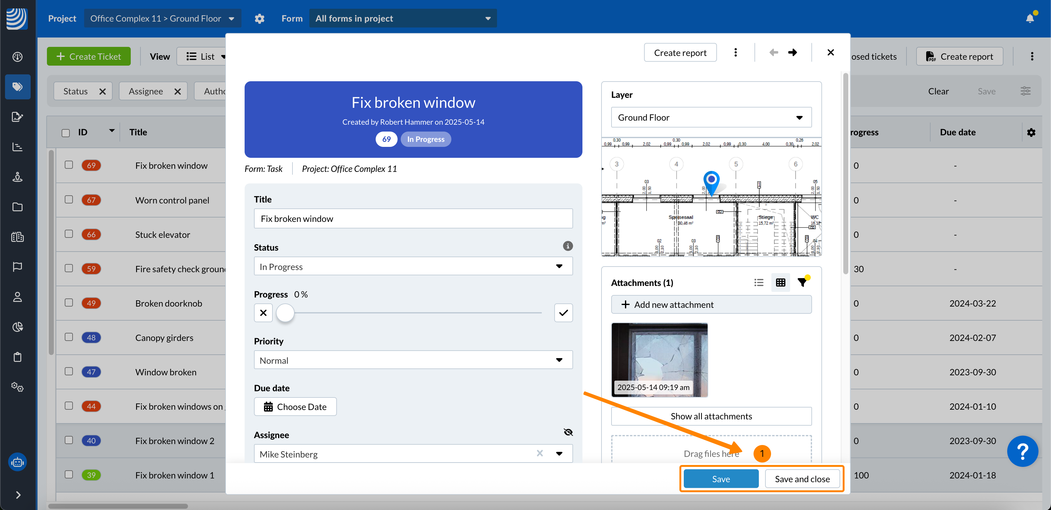 Kada završite s uređivanjem tiketa (npr. postavite status na "U tijeku"), morate spremiti promjene u poljima tiketa:
