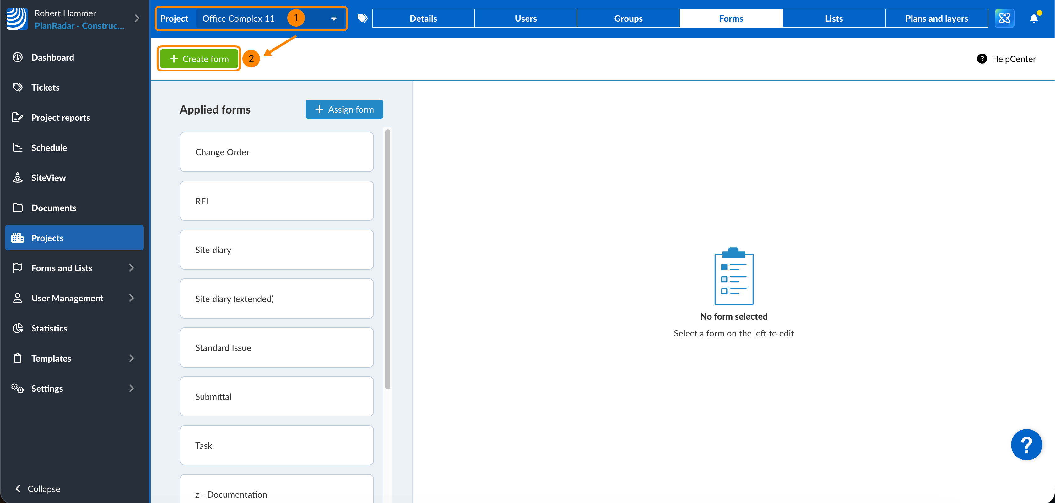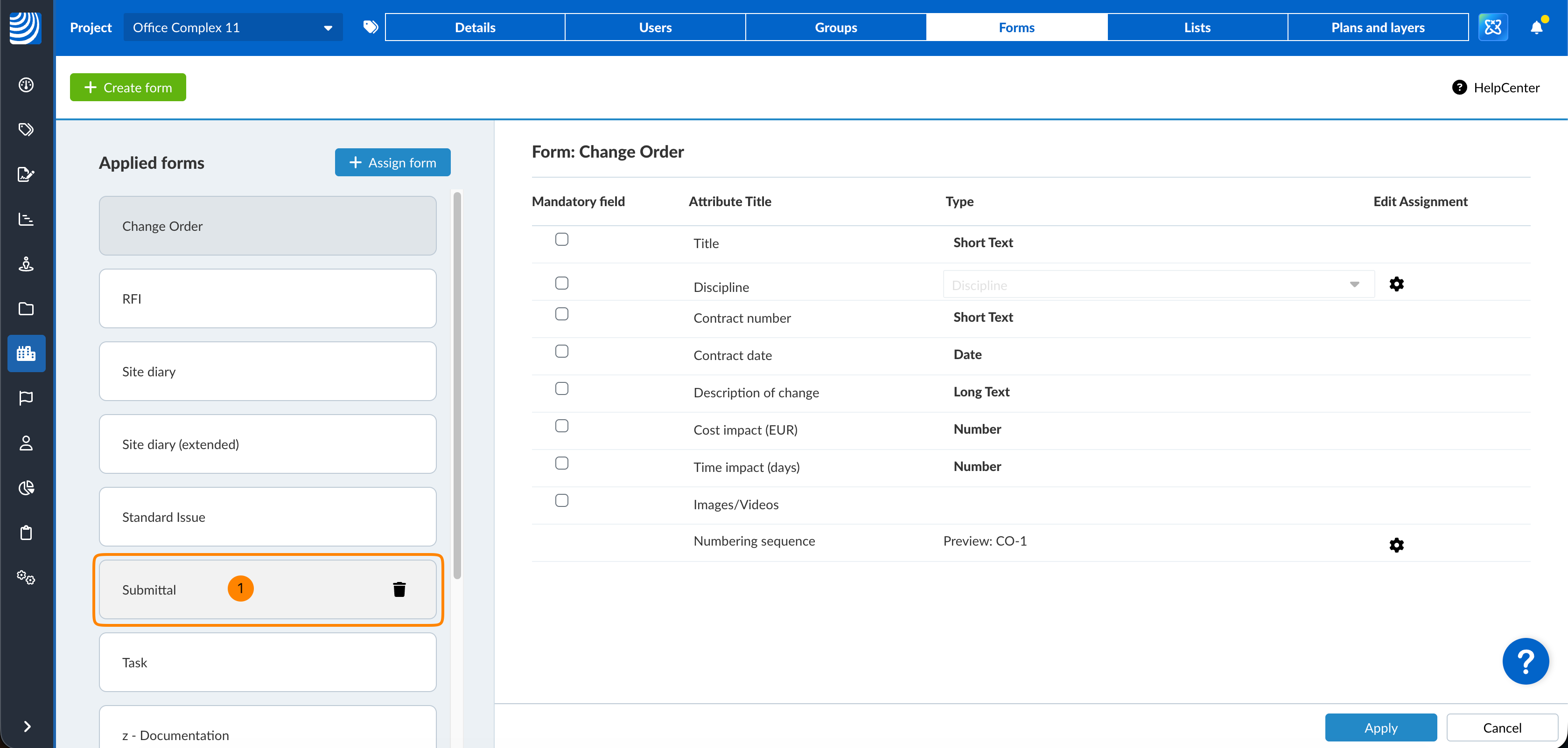 Za upravljanje oblicima projekta potreban vam je interni korisnik s korisničkim dopuštenjem 'Projekti'. Pročitajte više u Dozvolama.