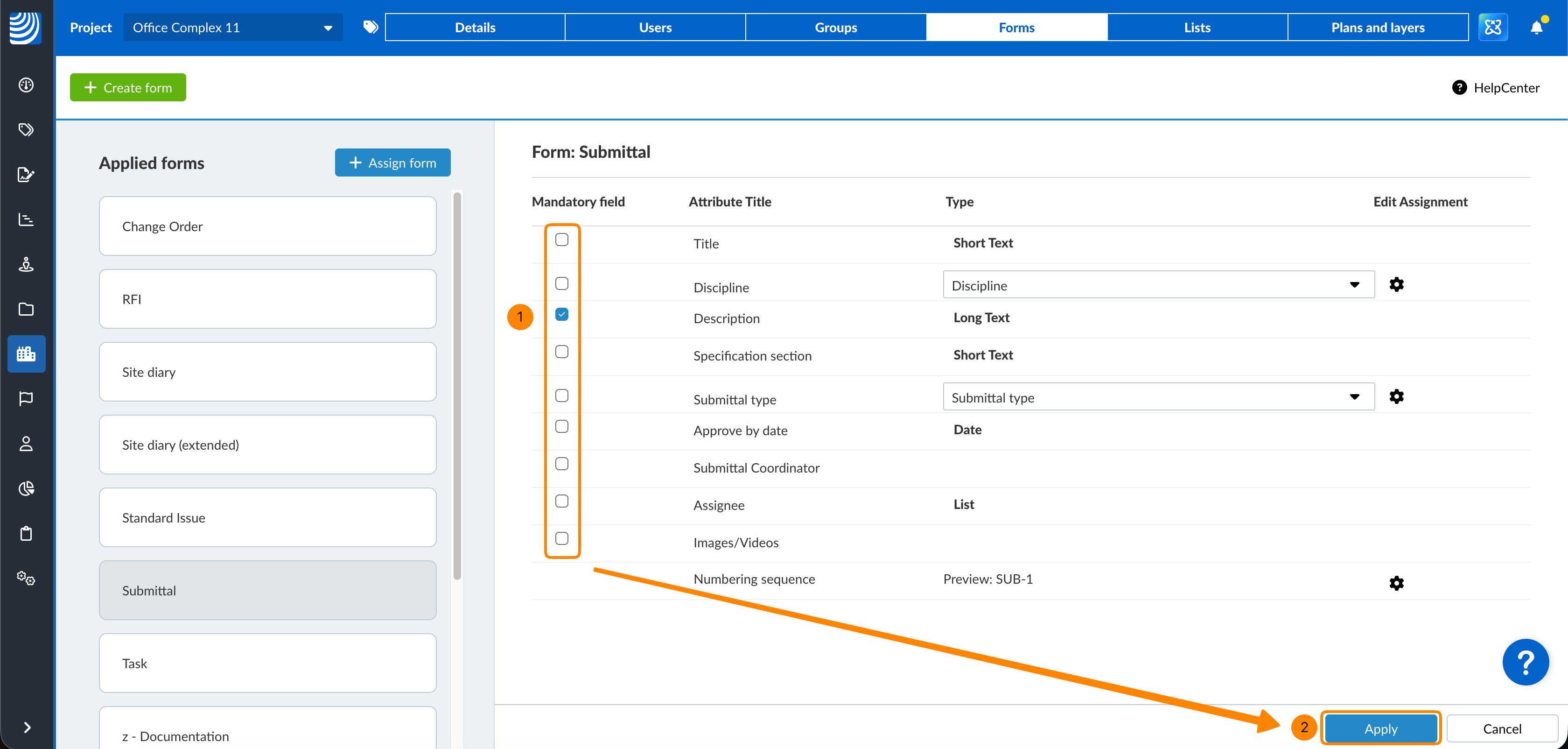 - Označite potvrdni okvir pored željenog polja u stupcu Obavezno polje