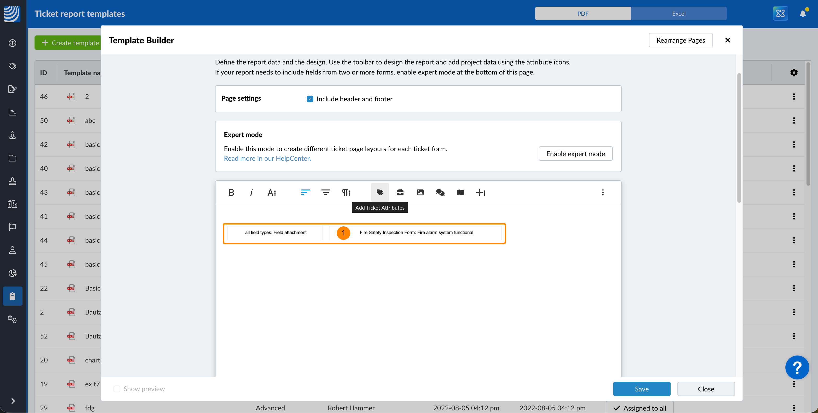 Kao što je detaljno opisano u Stvaranje naprednih predložaka izvješća o ulaznicama, kada stvorite ili uredite napredni predložak izvješća o ulaznicama, možete otići na stranicu (ili stvoriti novi) i dodajte atribute svom sadržaju.