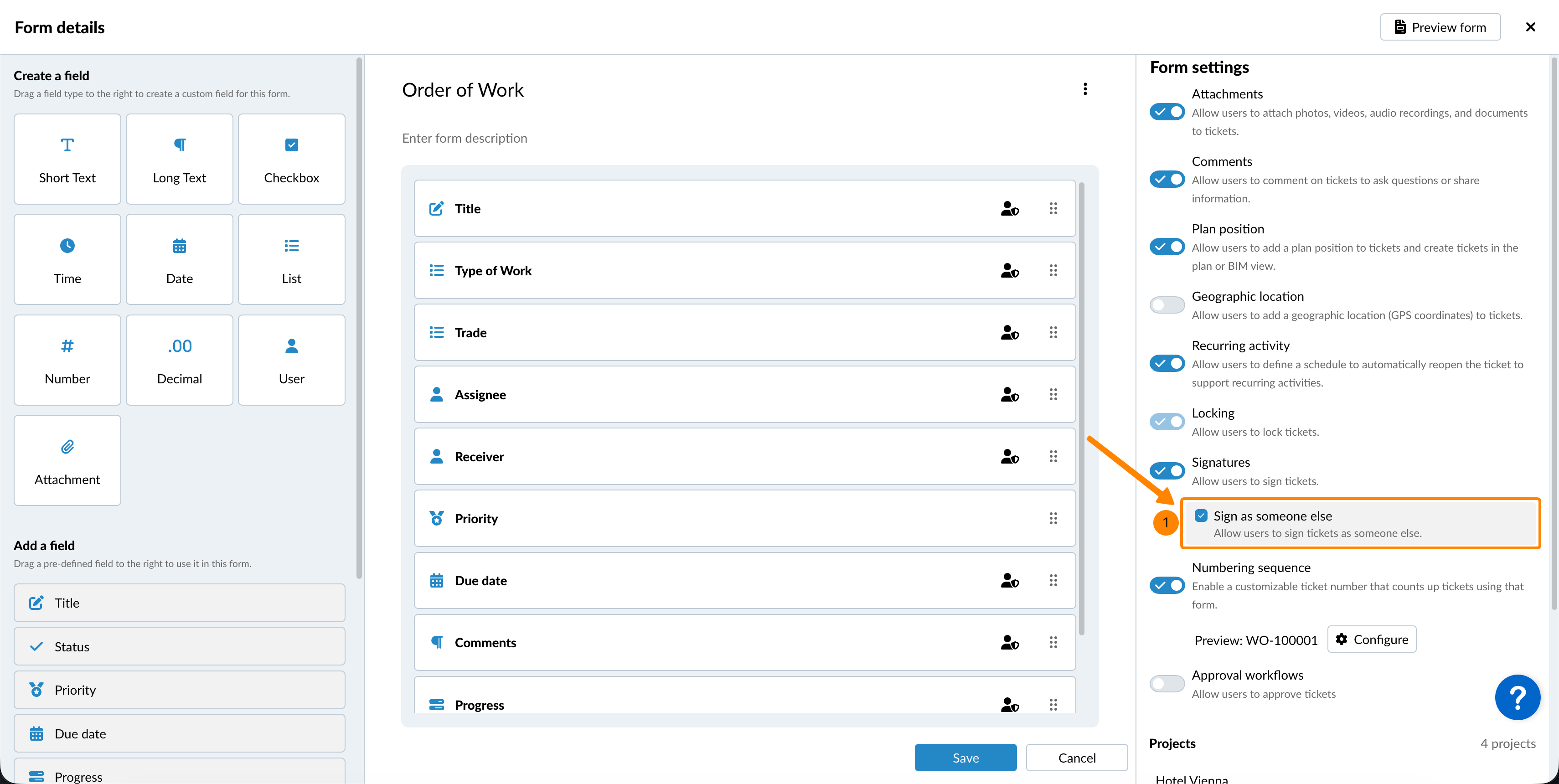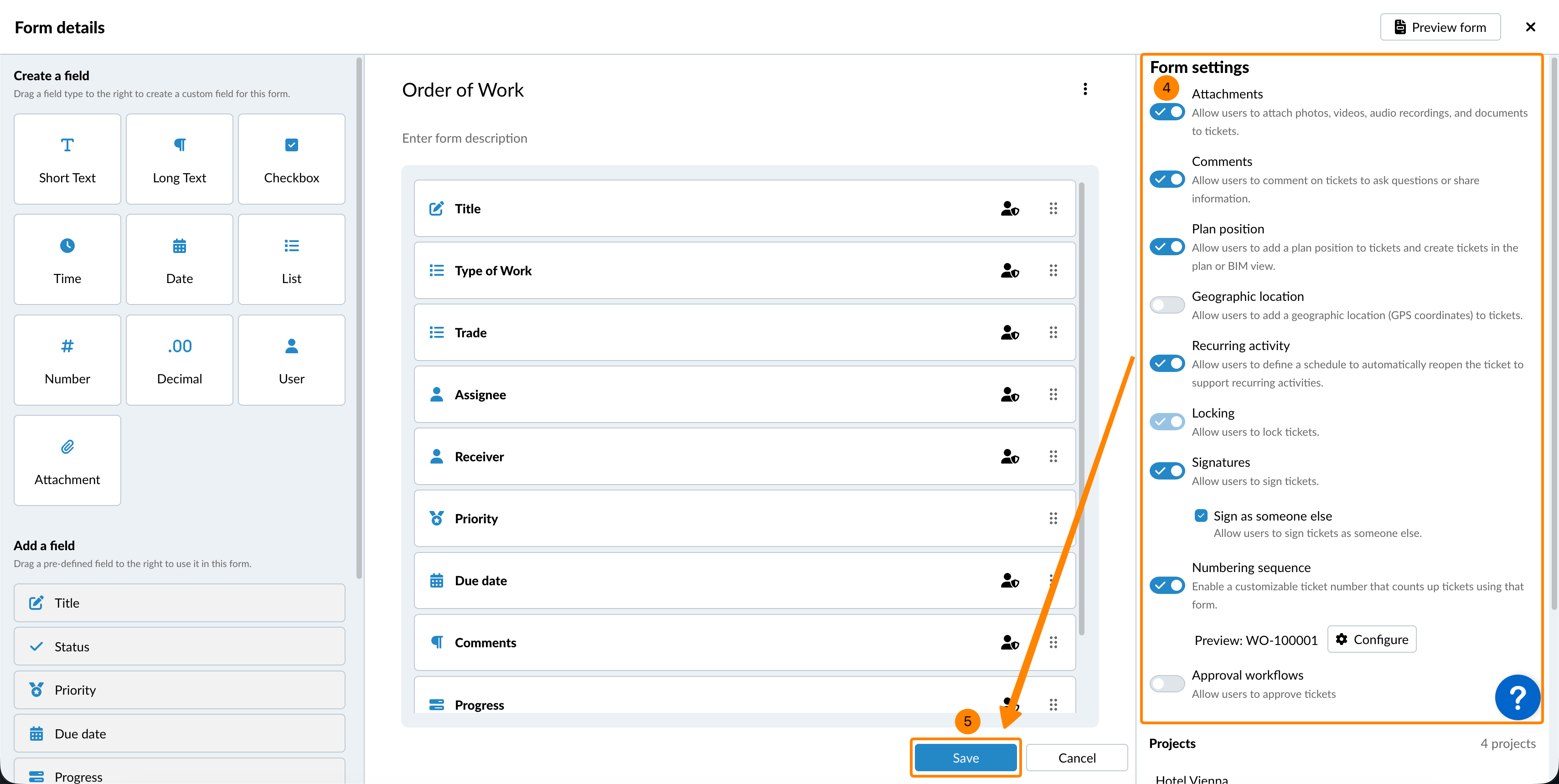 Opcija numeriranja omogućuje vam dodavanje prilagodljivog ticketi broja koji se automatski povećava sa svakim novim ticketi kreiranim pomoću ovog obrasca.