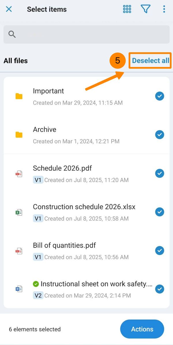 - Odaberite potvrdni okvir za svaku datoteku ili mapu