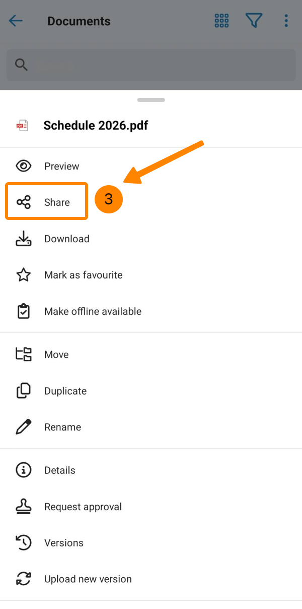 - Nastavite u dijalogu 'Dijeli' vašeg mobilnog operativnog sustava.