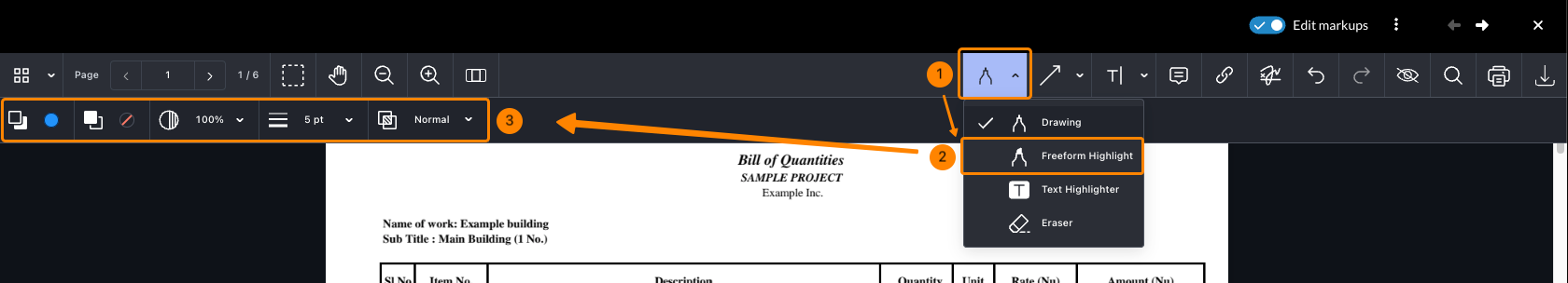 - Odaberite alat s padajućeg izbornika, npr. Freeform Highlighter