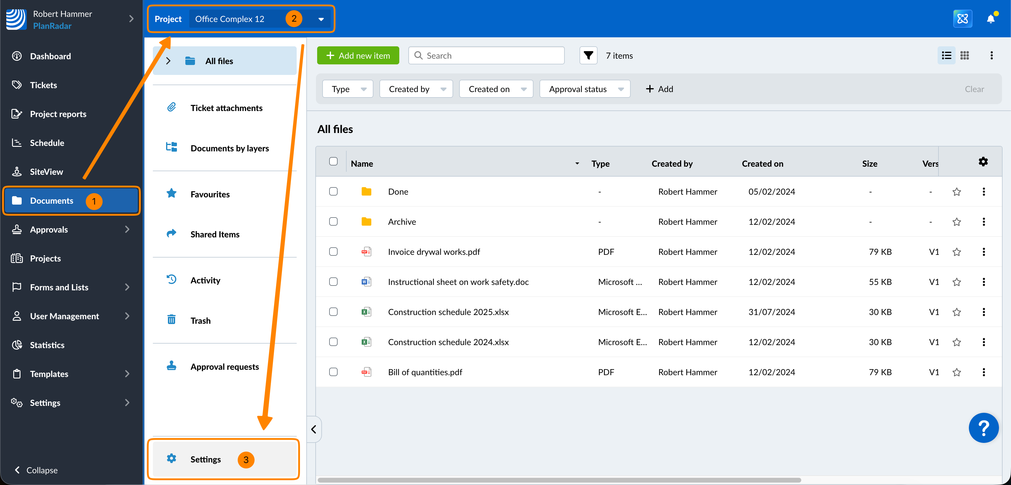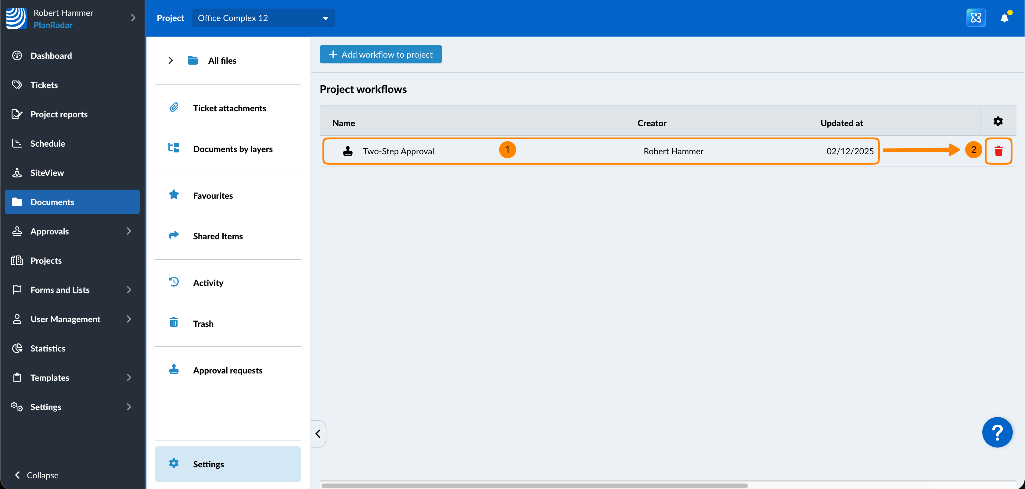 Dodajte tijekove rada u odjeljak Dokumenti projekata kako biste ih učinili dostupnima prilikom zahtjeva za odobrenje dokumenata ili planova. Da biste to učinili: