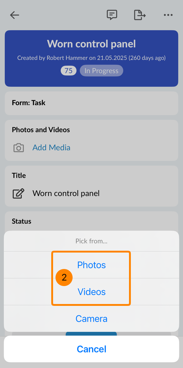 - Dodirnite Dodaj medije pod Fotografije i videozapisi