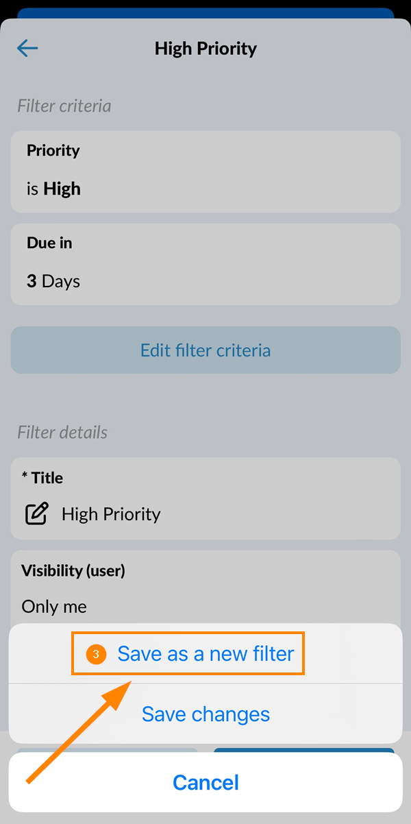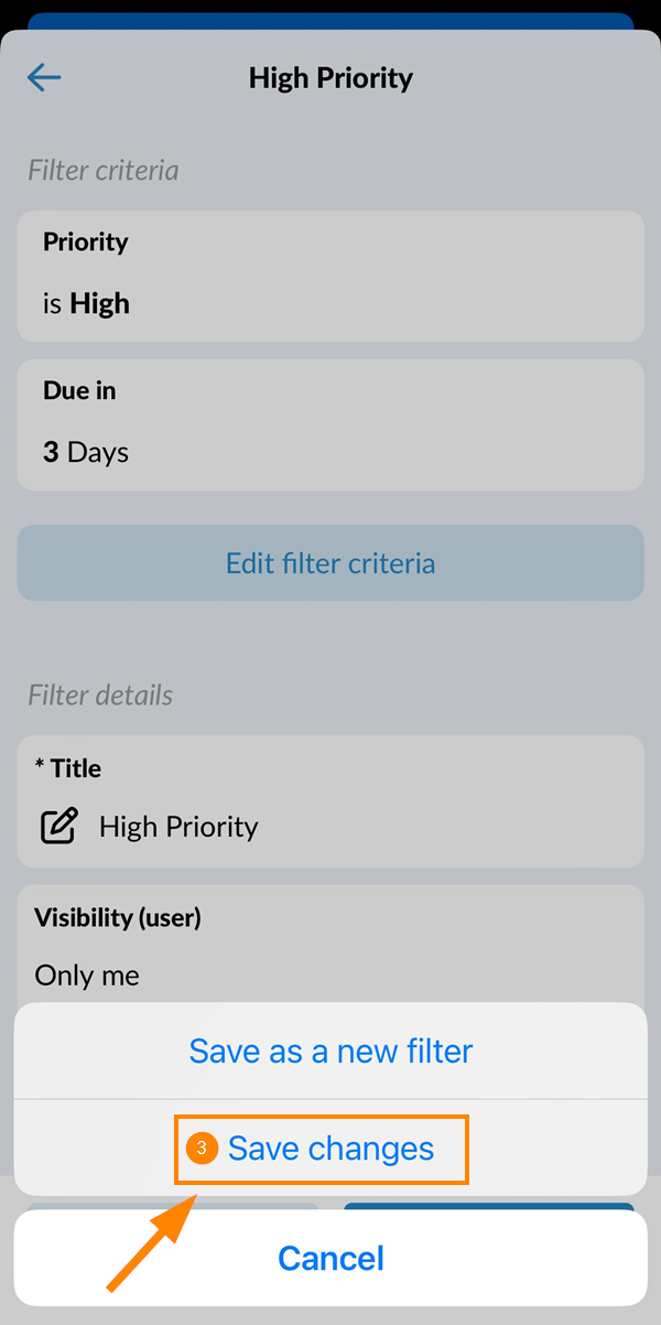 - → I nuovi criteri saranno salvati nel filtro esistente denominato High Priority
