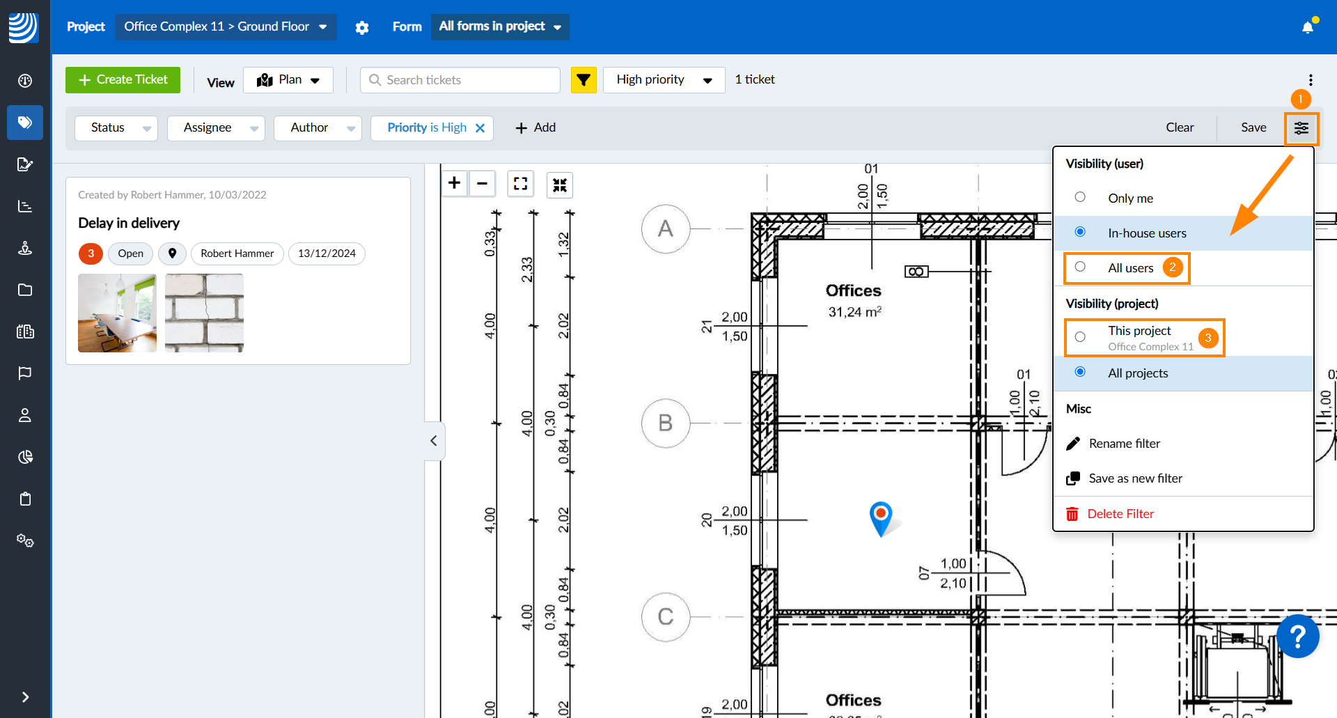 Tutti gli utenti = tutti vedranno il filtro. - Selezionare Visibilità (progetto):