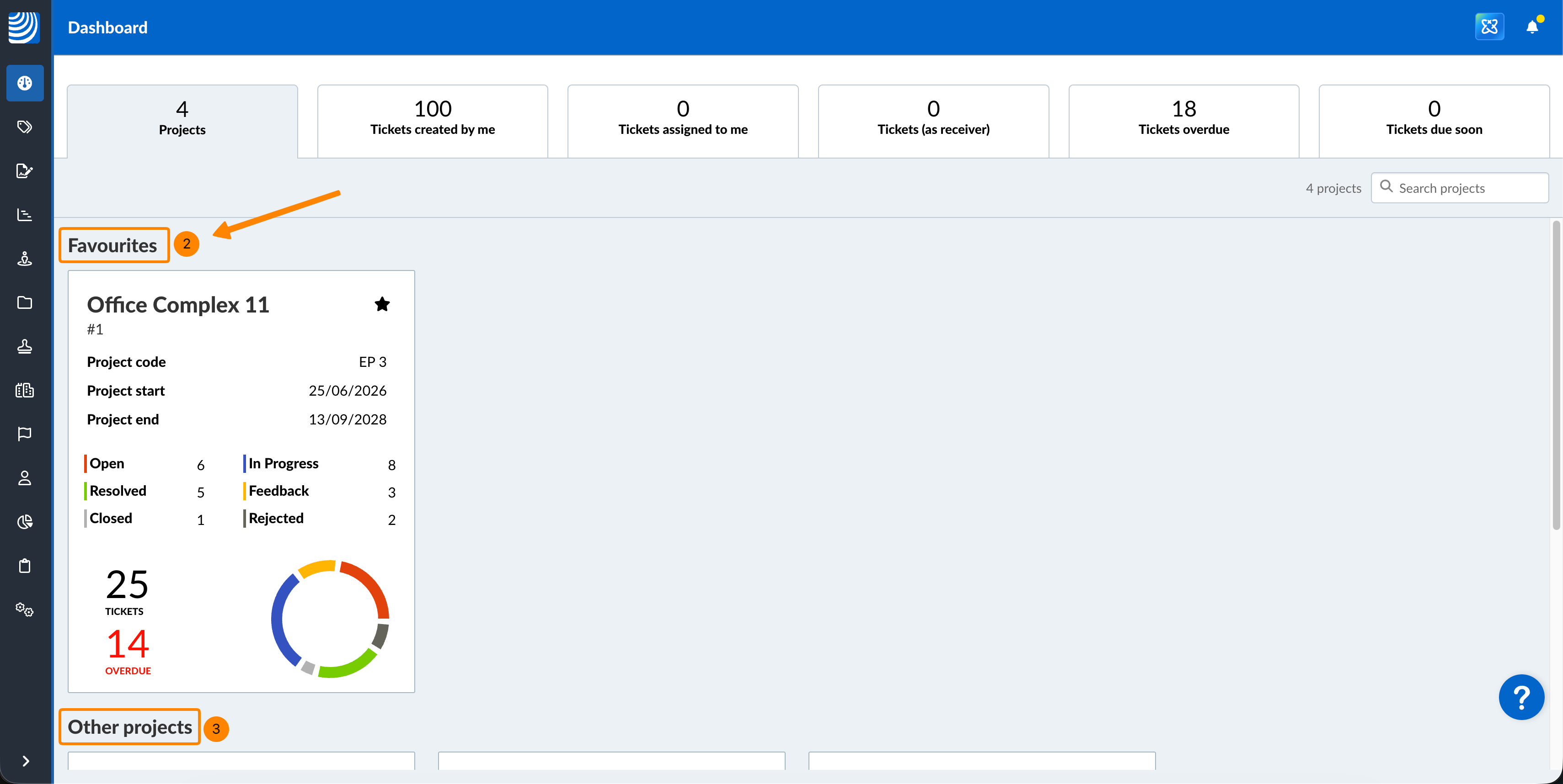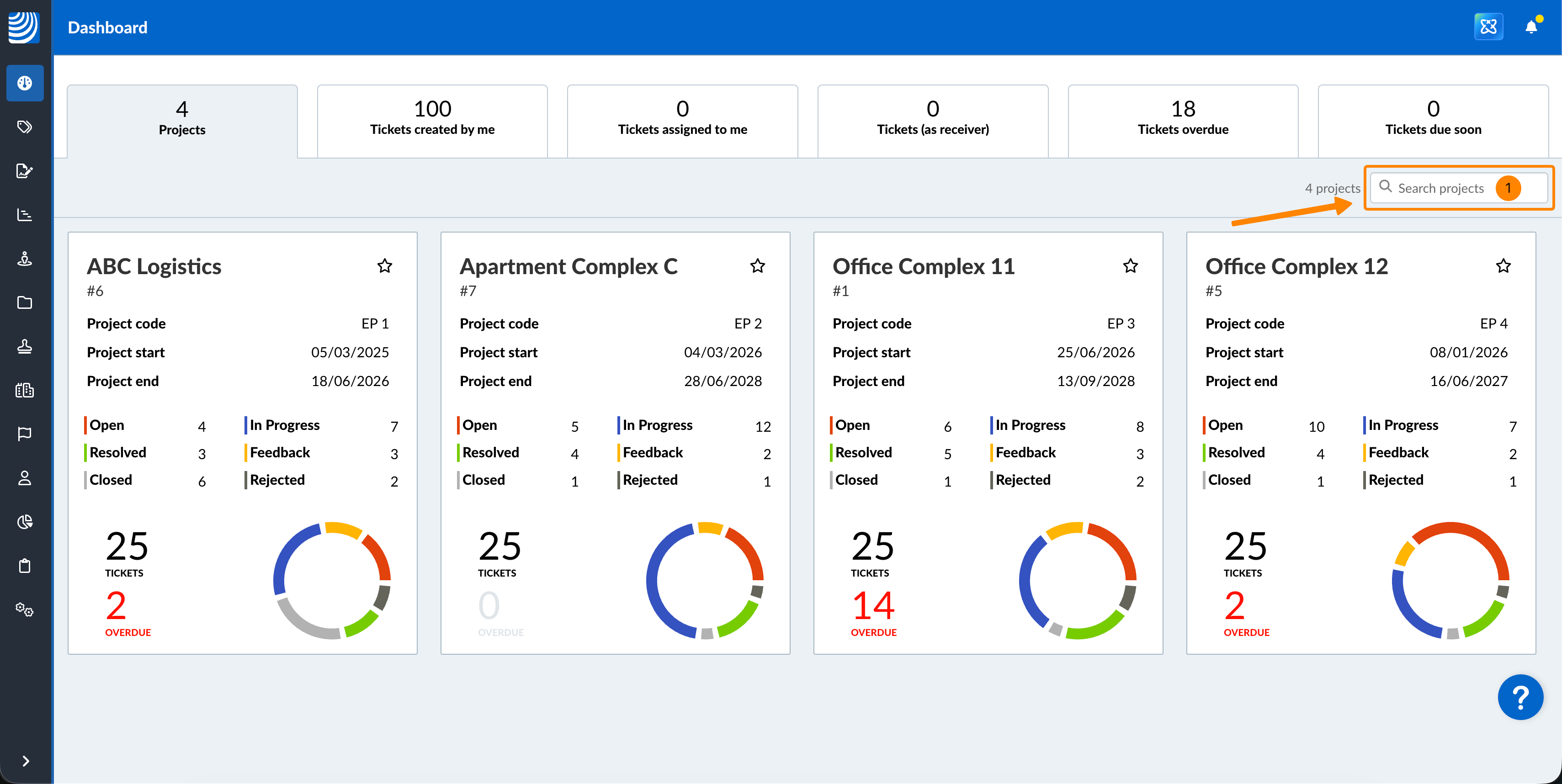 Ottenga una panoramica di tutti i suoi progetti e ticket utilizzando la dashboard nella Webapp.