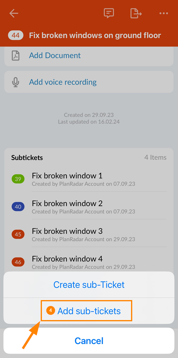 - Toccare Aggiungere sottobiglietti