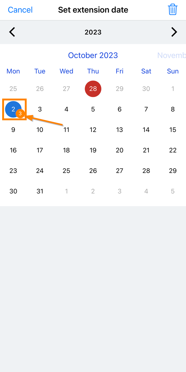 - Selezioni una data di scadenza , utilizzando il selezionatore di date.