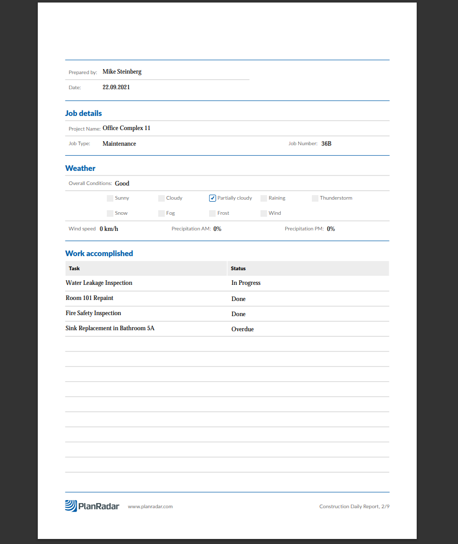 Crea e carica i suoi moduli PDF e lascia che gli utenti li compilino come rapporti di progetto in modo "ciò che si vede è ciò che si ottiene". Una volta compilato e inviato, il modulo PDF non può più essere modificato e viene archiviato come rapporto di progetto.