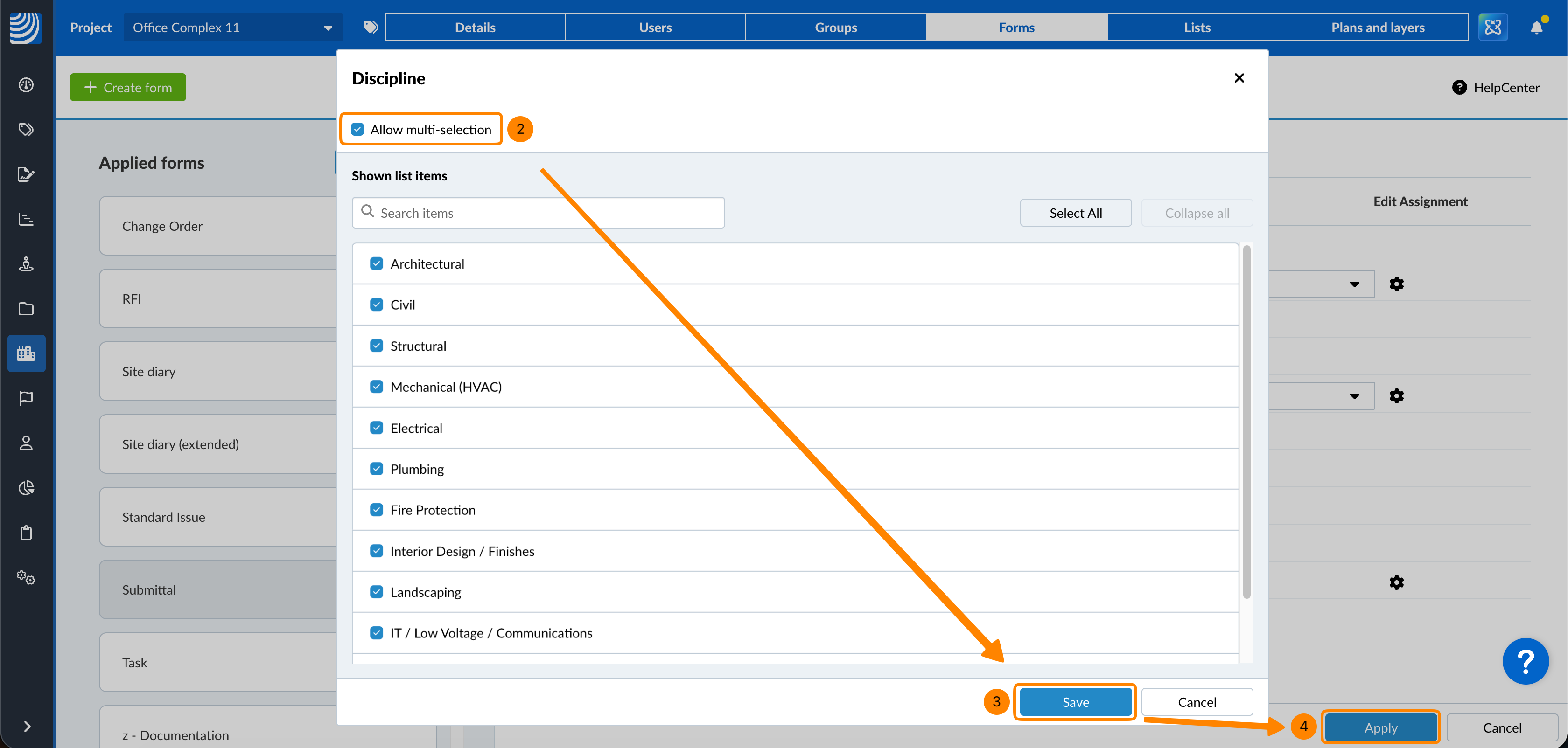 Il pulsante Applica è disattivato finché ci sono campi elenco senza liste assegnate.