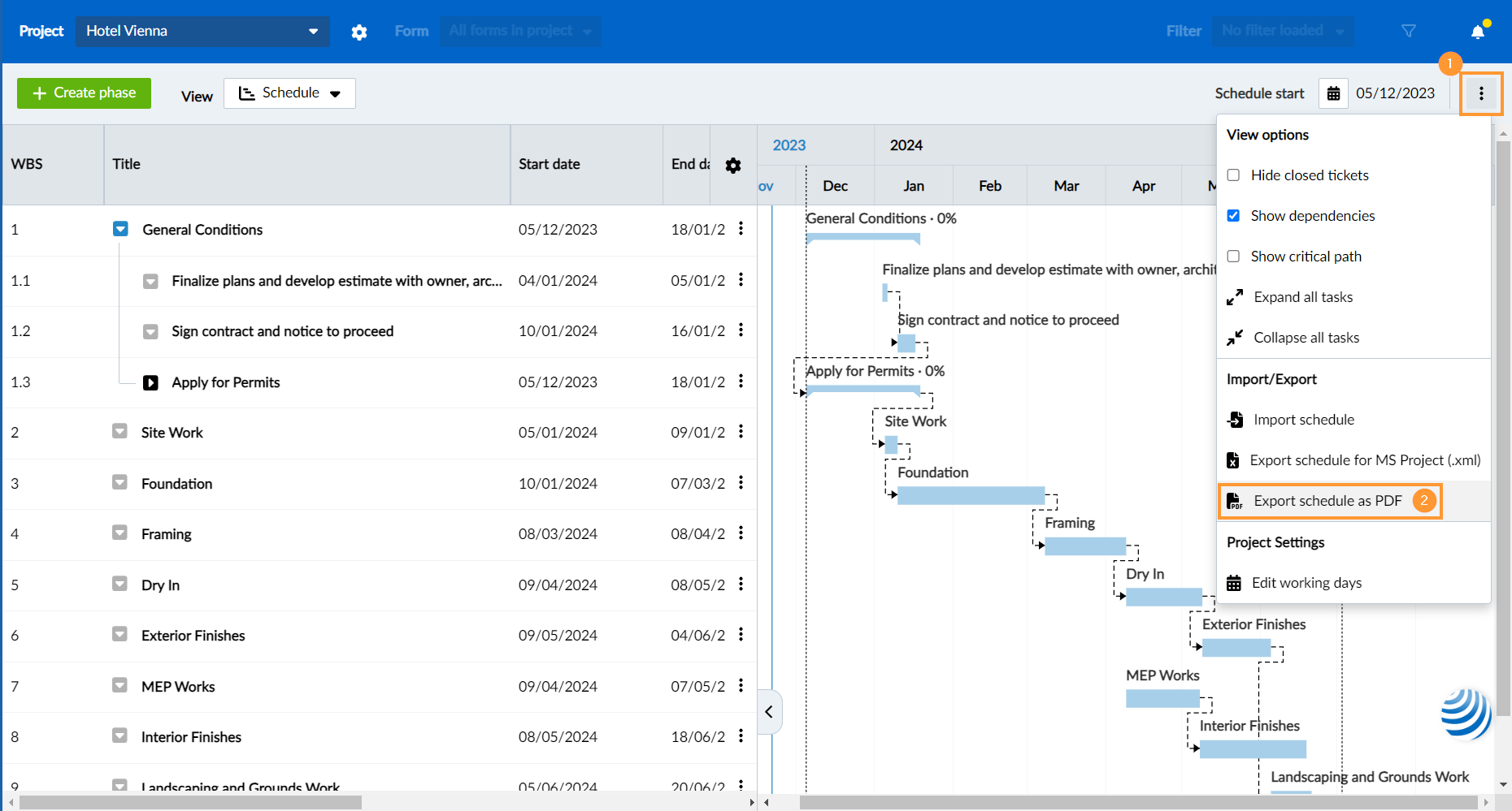 PlanRadar ricorderà le sue modifiche per la prossima volta che esporterà un programma in formato PDF.