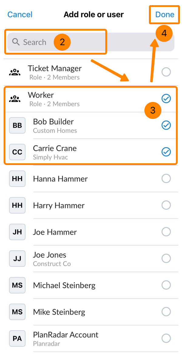 - Toccare + Aggiungi un ruolo o un utente