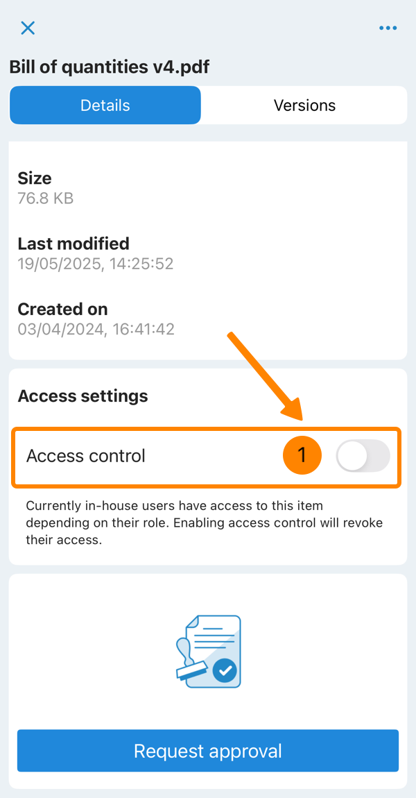 Gli utenti interni con il permesso di ruolo 'Controllo accessi' possono gestire gli accessi nella Gestione documenti. Per saperne di più, consulti Permessi.