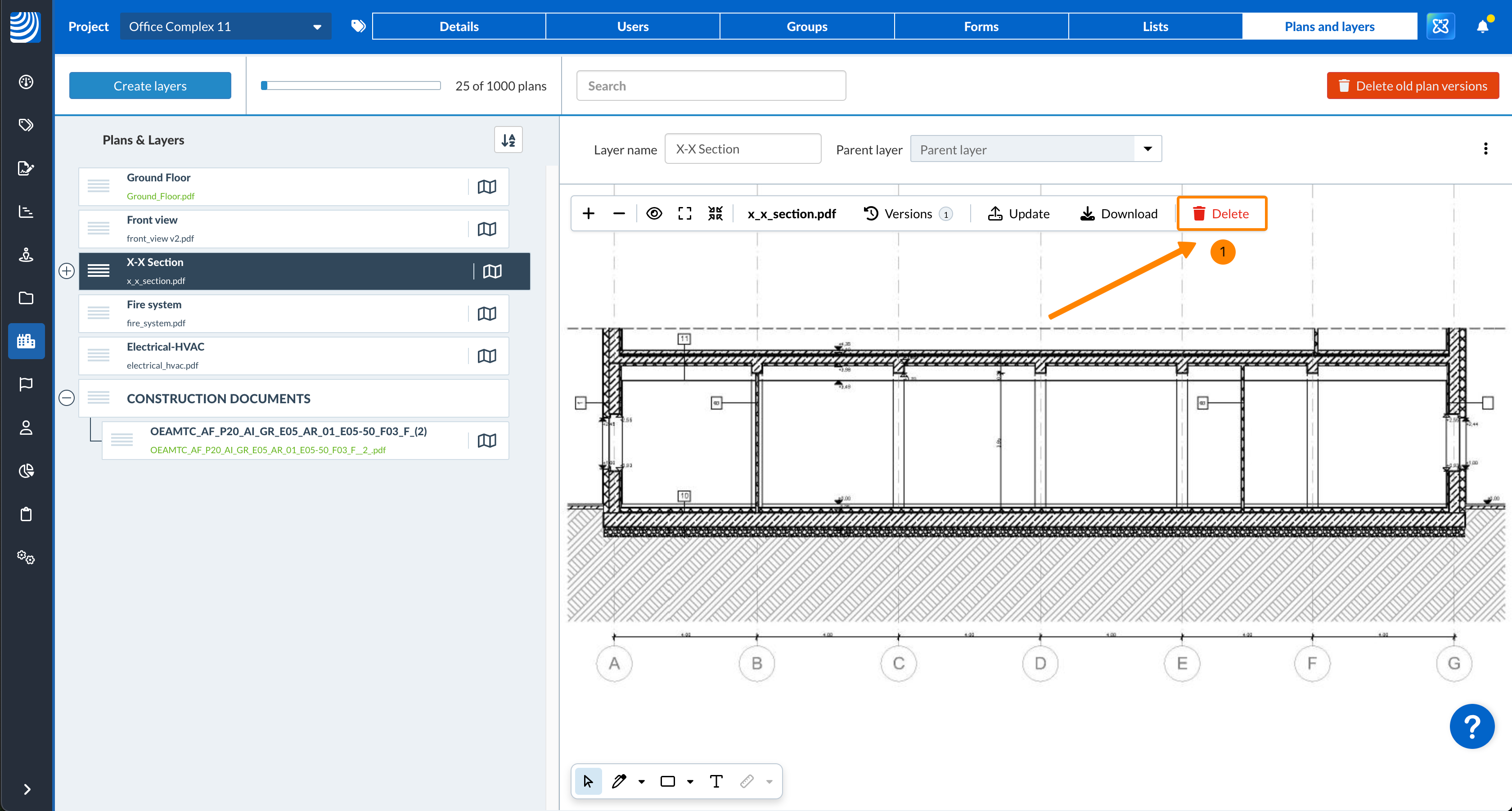 Se è sicuro di non aver più bisogno delle vecchie versioni dei piani di qualsiasi livello, può eliminarle tutte in una volta. La versione attuale di ogni piano non verrà eliminata.