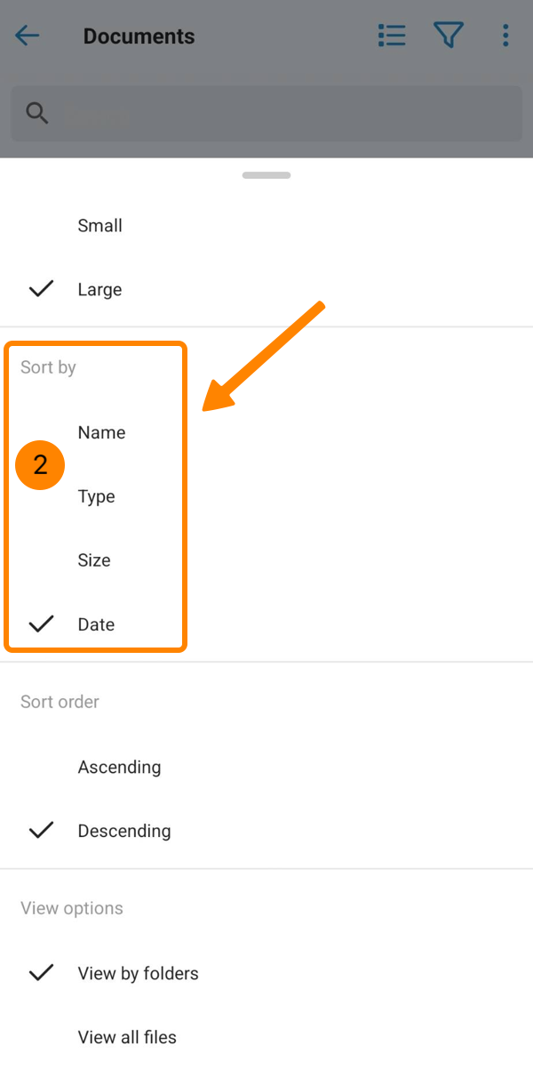 Nell'app mobile la ricerca in Documenti supporta attualmente solo la ricerca nella cartella corrente, senza sottocartelle.