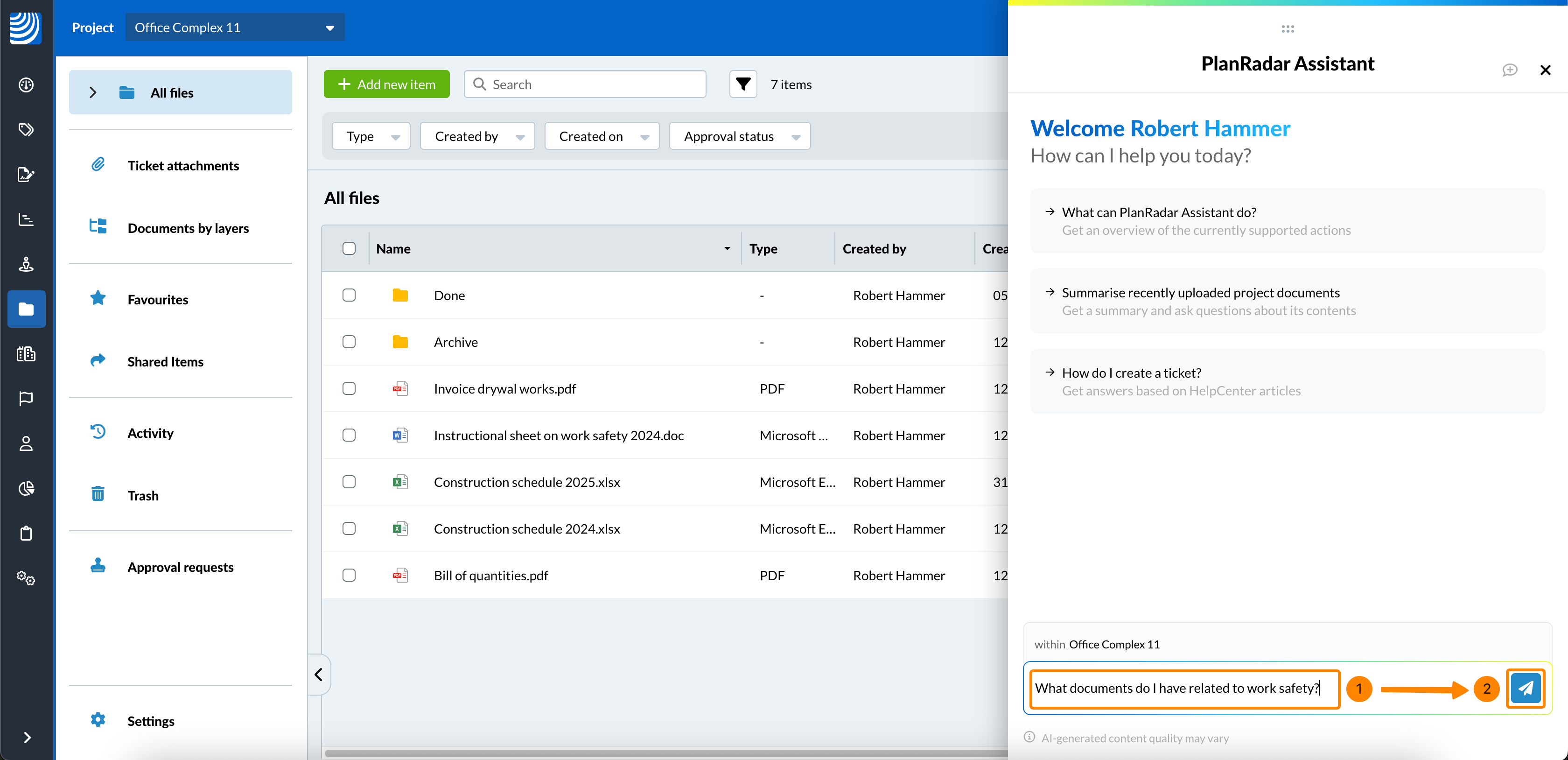 | Argomento + metadati combinati | "Rapporti sui documenti HVAC creati da John a settembre" |