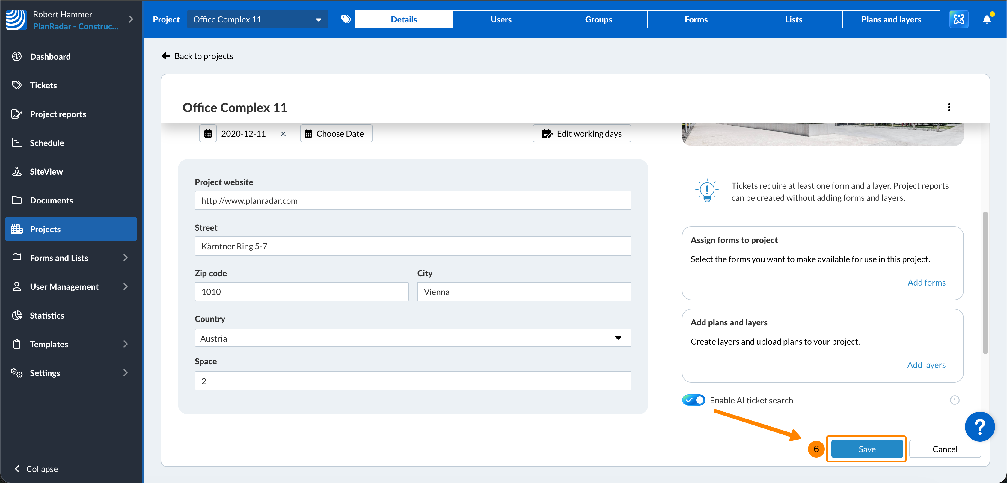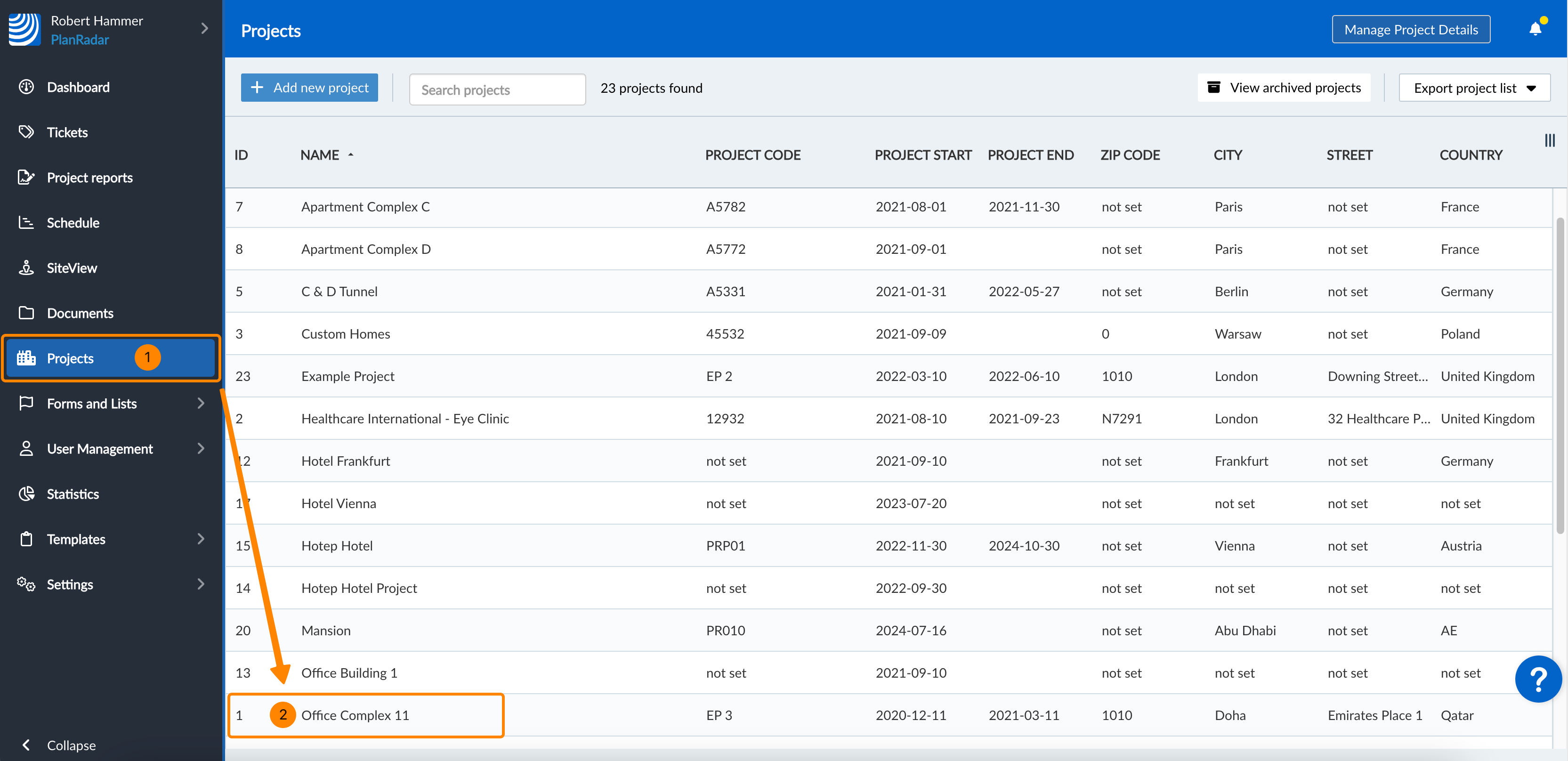 - Clicchi sul progetto, ad esempio Complesso di uffici 11