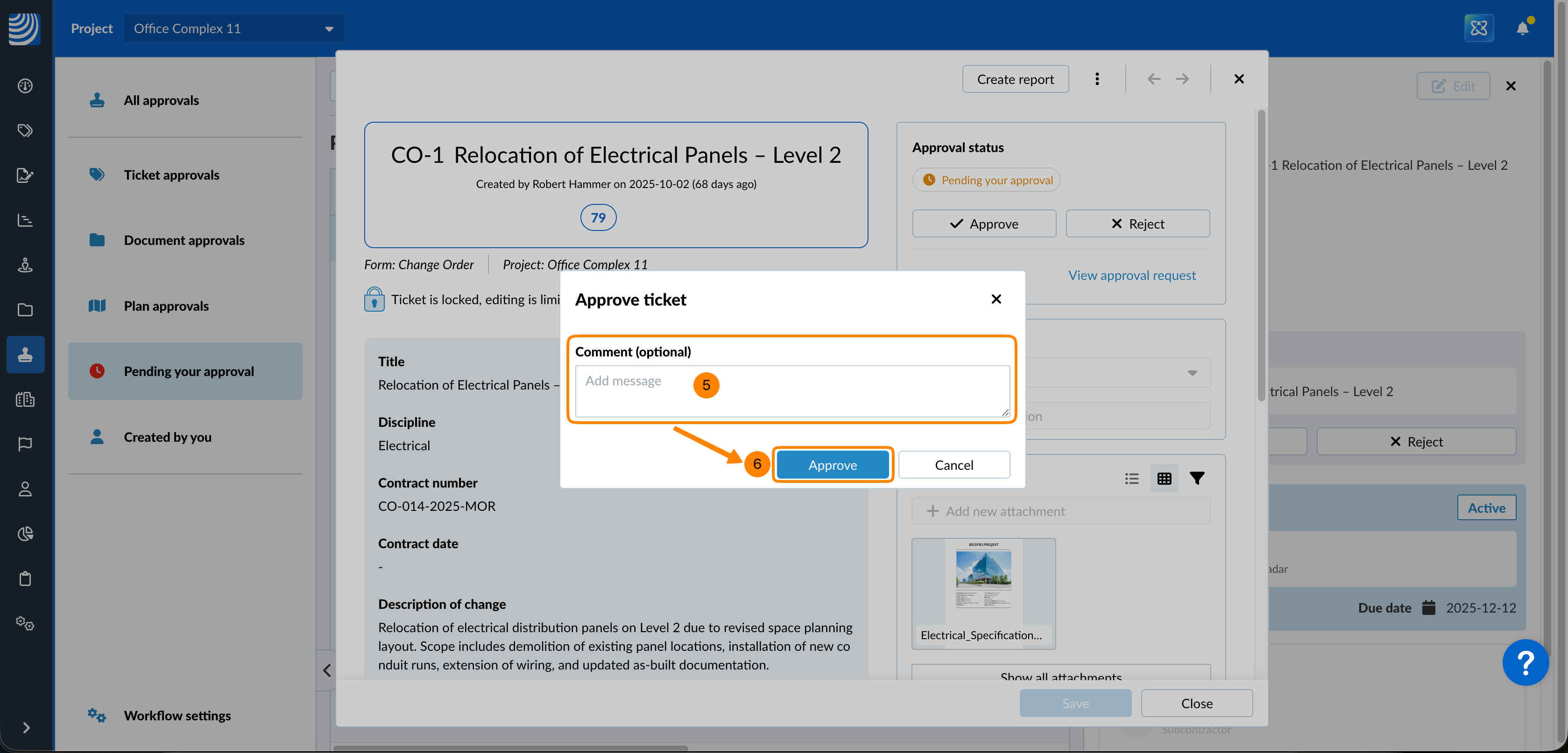Riveda e approvi o rifiuti un Ticket con una richiesta di approvazione in sospeso e aggiunga facoltativamente un commento. Per saperne di più, consulti e richieda l'approvazione di un Ticket.