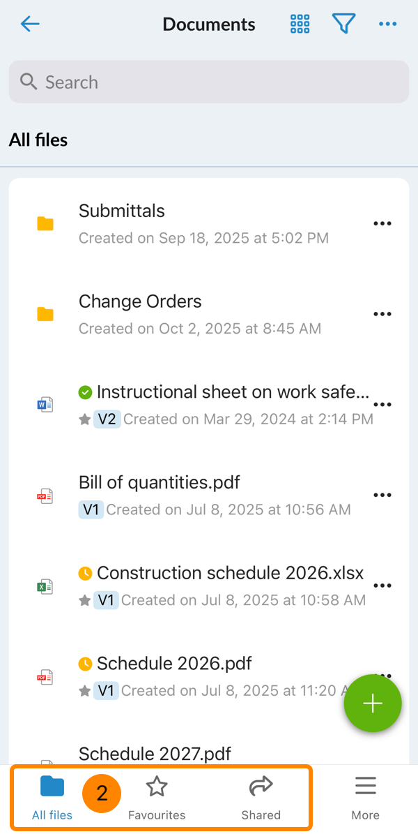 - Clicchi su Tutti i file o Preferiti o Elementi condivisi