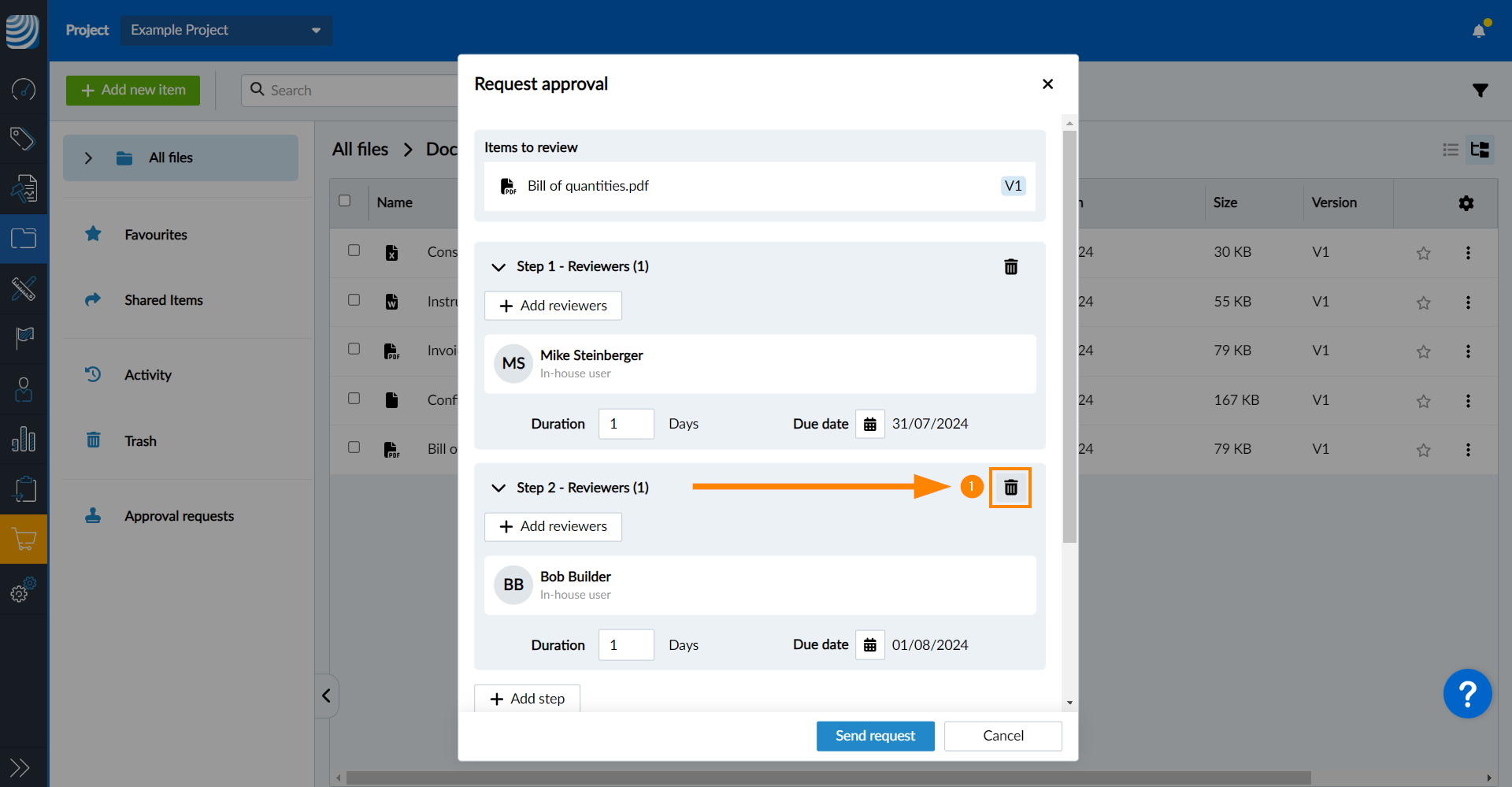 Quando richiede l'approvazione per un singolo file (o per più file - come descritto sopra), non deve compilare ripetutamente gli stessi revisori e gli stessi passaggi come descritto sopra in Compilare e inviare una richiesta di approvazione.