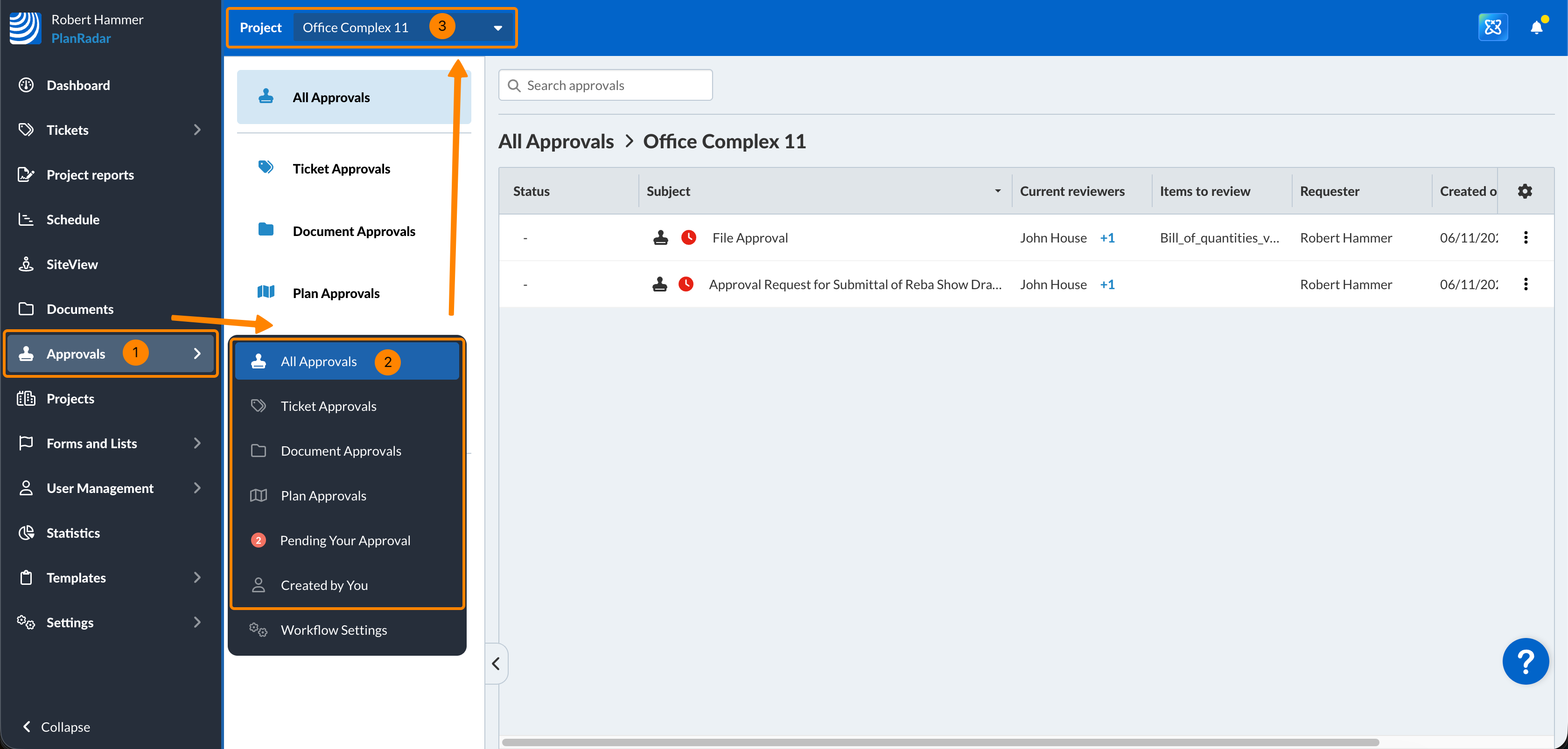 - Opzionale: Selezioni un progetto o Tutti i progetti nel menu a tendina Progetto per visualizzare le approvazioni corrispondenti.