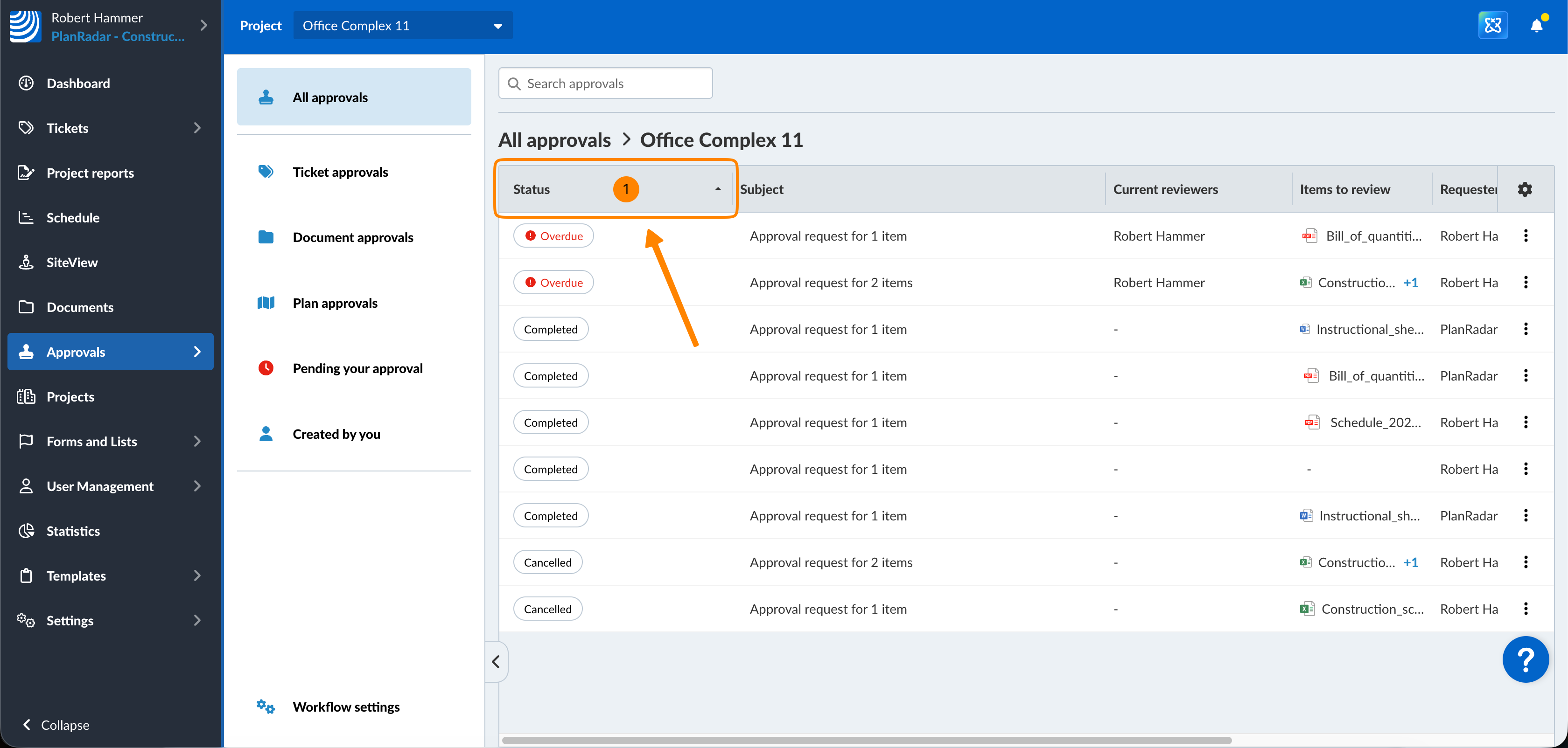 Se si trova, ad esempio, nella vista Approvazioni documenti, potrebbe voler ordinare l'elenco in base allo stato (o ad altre colonne) per vedere tutte le richieste di approvazione di documenti in sospeso o completate in una sola volta.