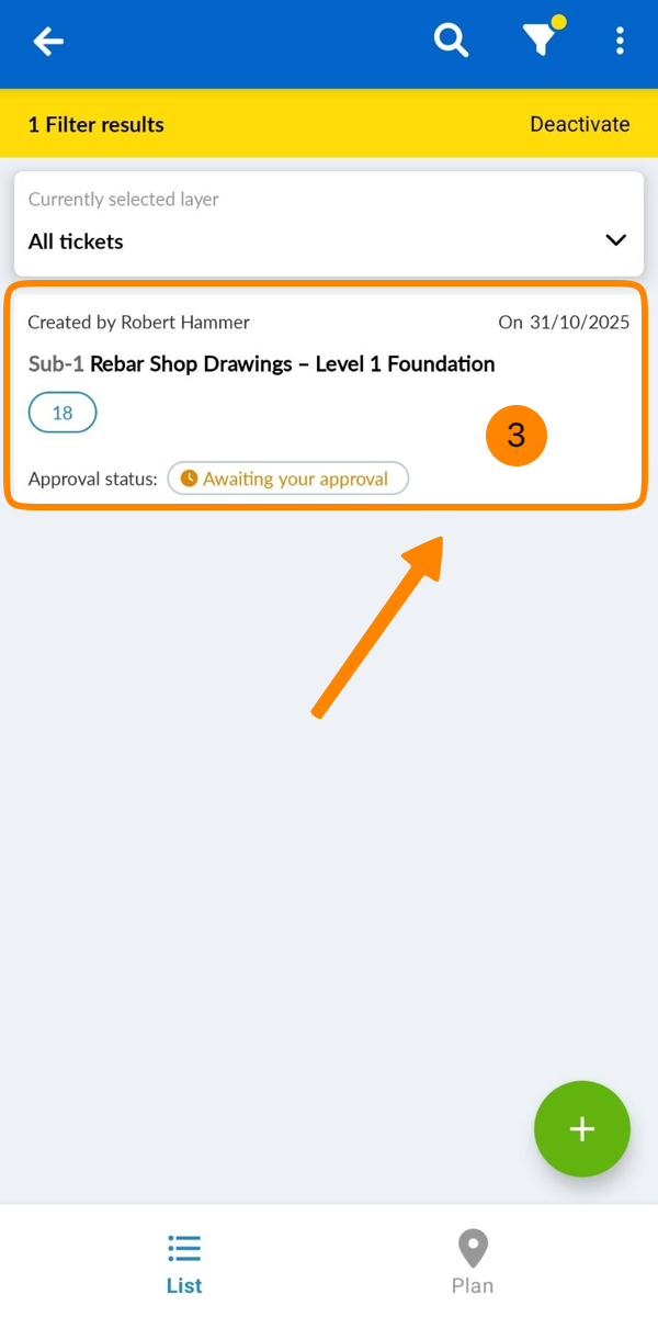 Nell'app mobile non esiste una panoramica per trovare tutte le richieste di approvazione in un unico posto. Per ulteriori azioni deve accedere ai dettagli di una richiesta di approvazione, come descritto di seguito per Ticket Approvazioni e Approvazioni di documenti e piani.