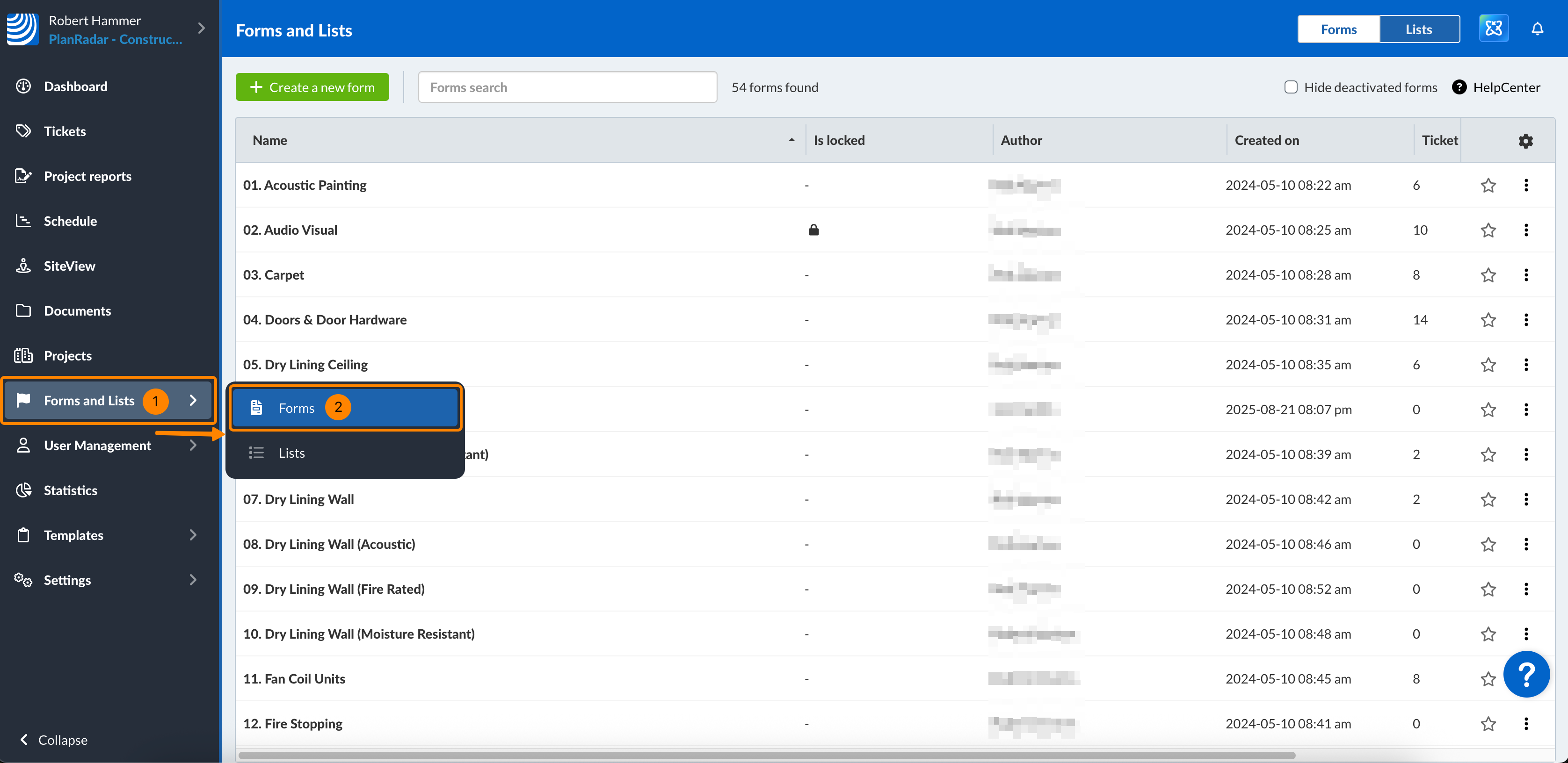 Per saperne di più sui moduli in PlanRadar e sul loro rapporto con i biglietti, veda Moduli.