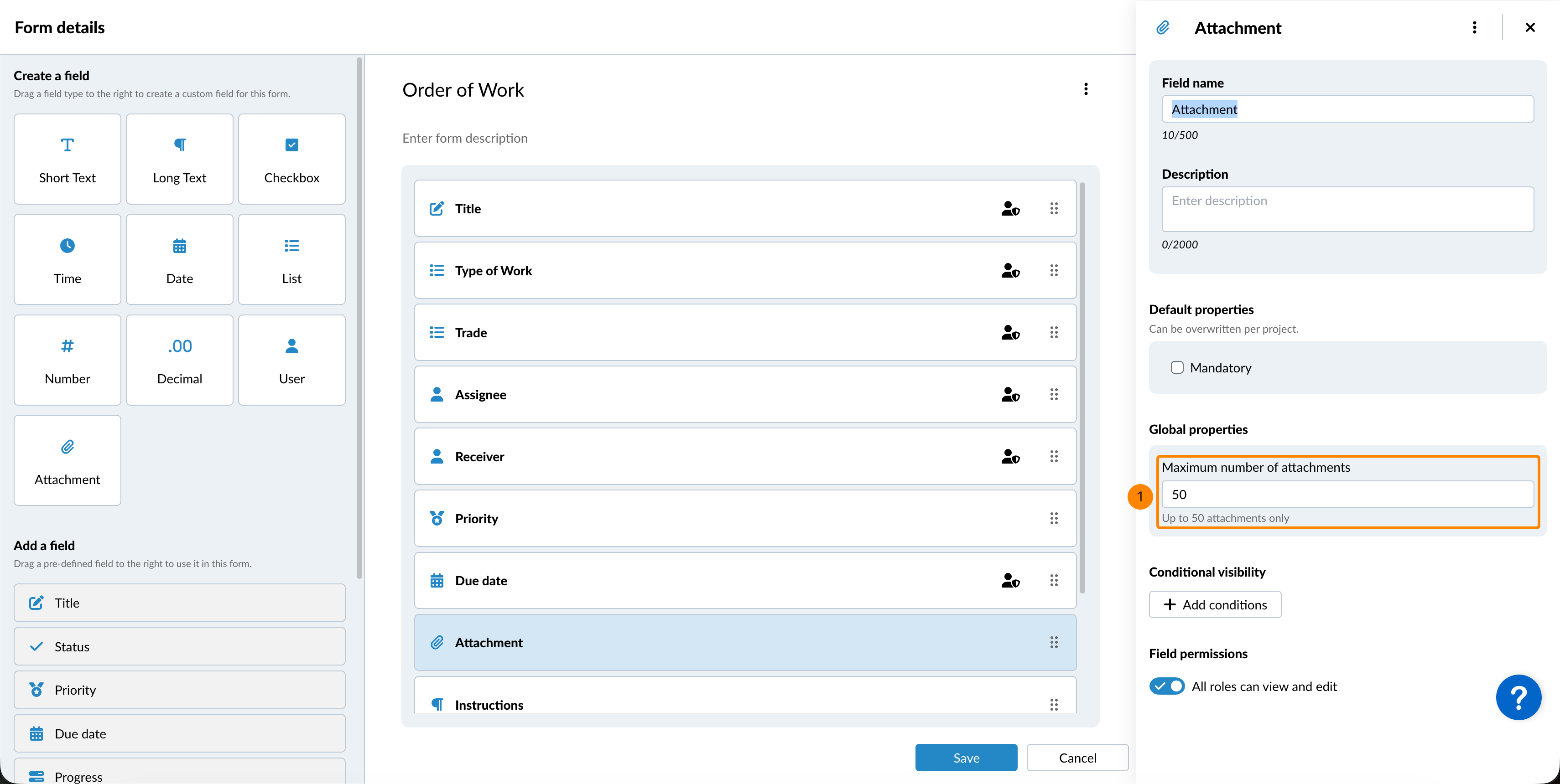 Per impostazione predefinita, PlanRadar consente un massimo di 50 allegati per campo.