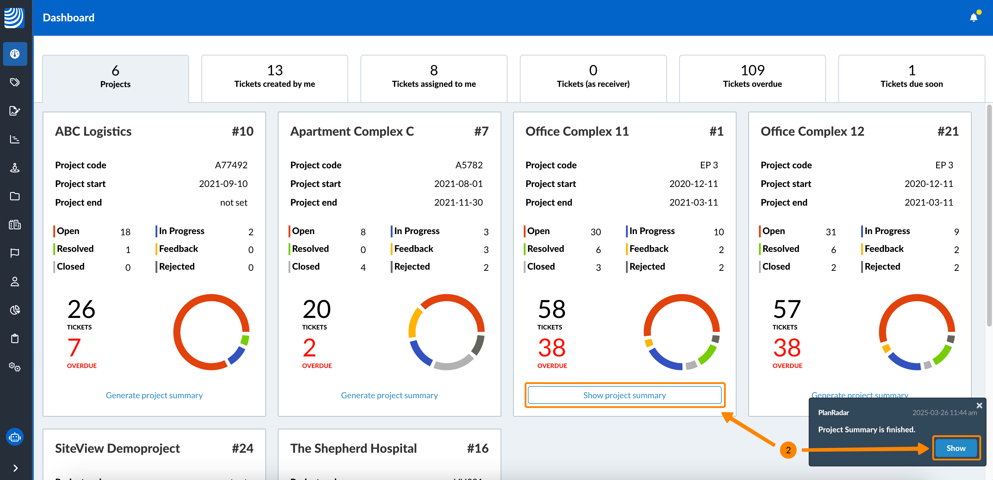 Proszę kliknąć Pokaż w powiadomieniu lub Pokaż podsumowanie projektu na pulpicie nawigacyjnym, aby wyświetlić podsumowanie projektu.