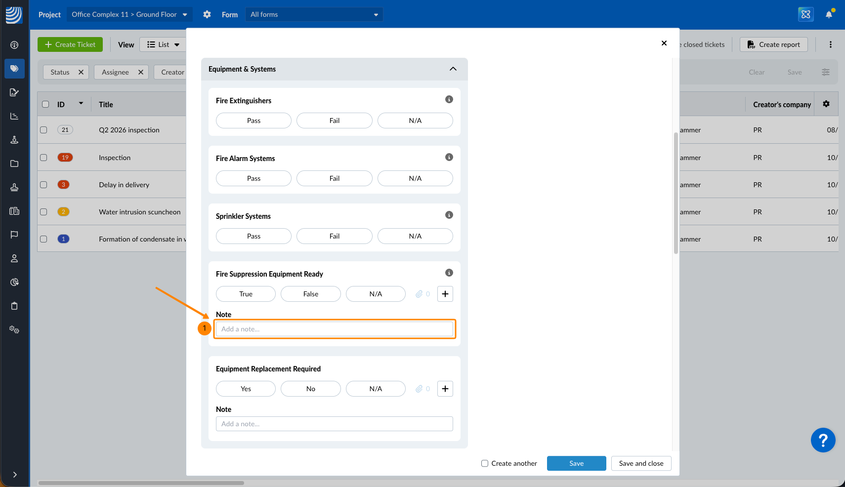 Aby dodać notatkę (w przypadku, gdy pole listy kontrolnej ma włączoną tę właściwość):