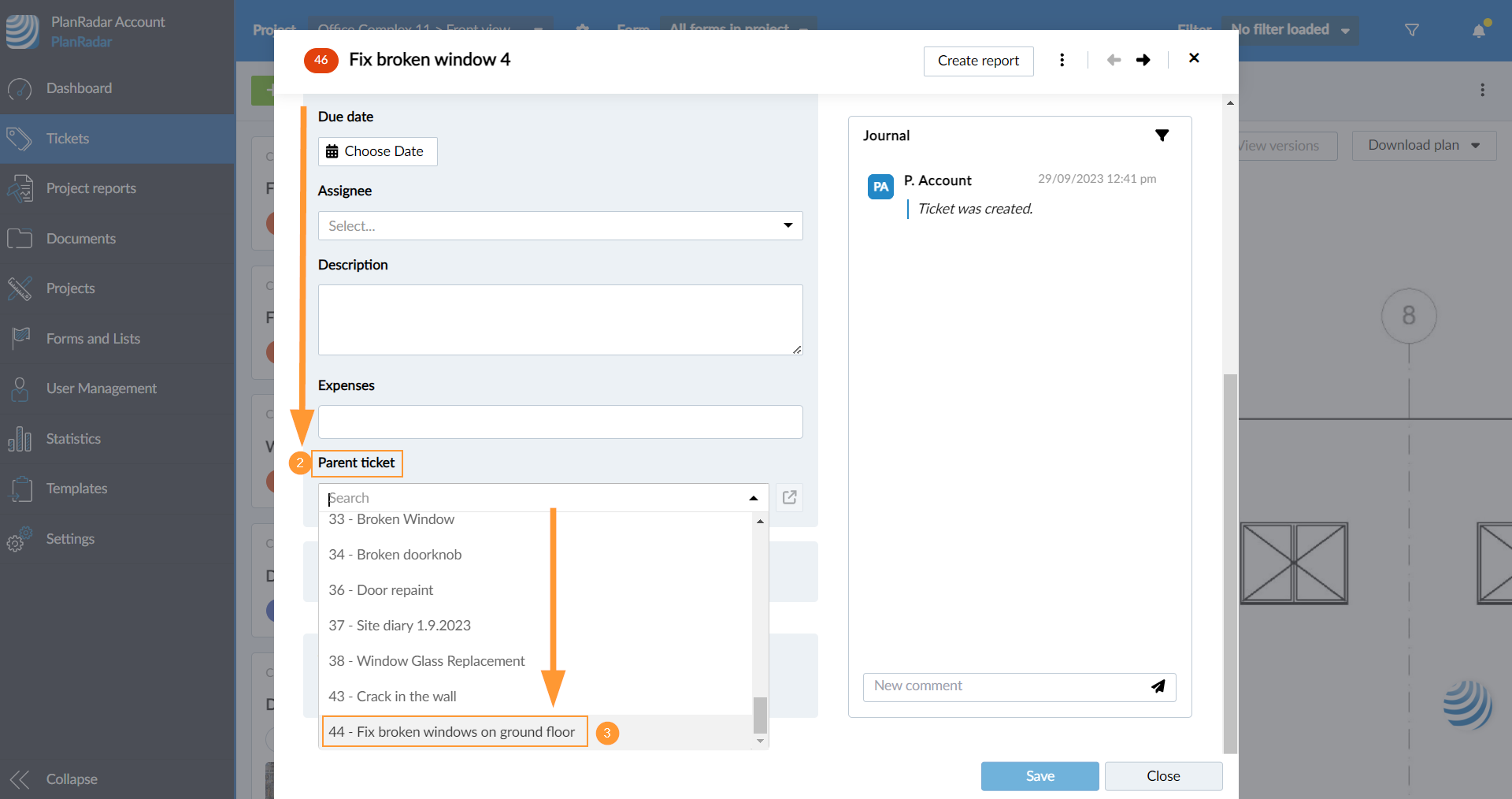 - Proszę przewinąć w dół do pola Parent ticket