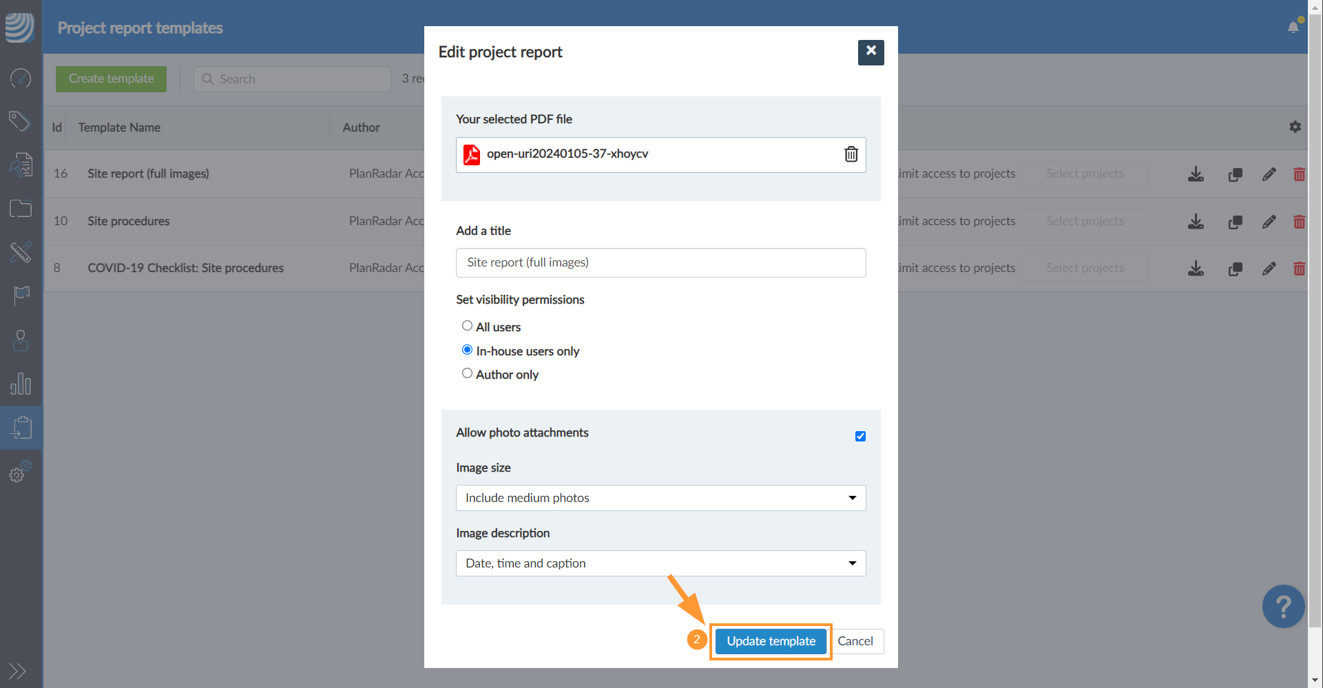 - Proszę utworzyć szablon raportu projektu w PlanRadar i przesłać formularz PDF.
