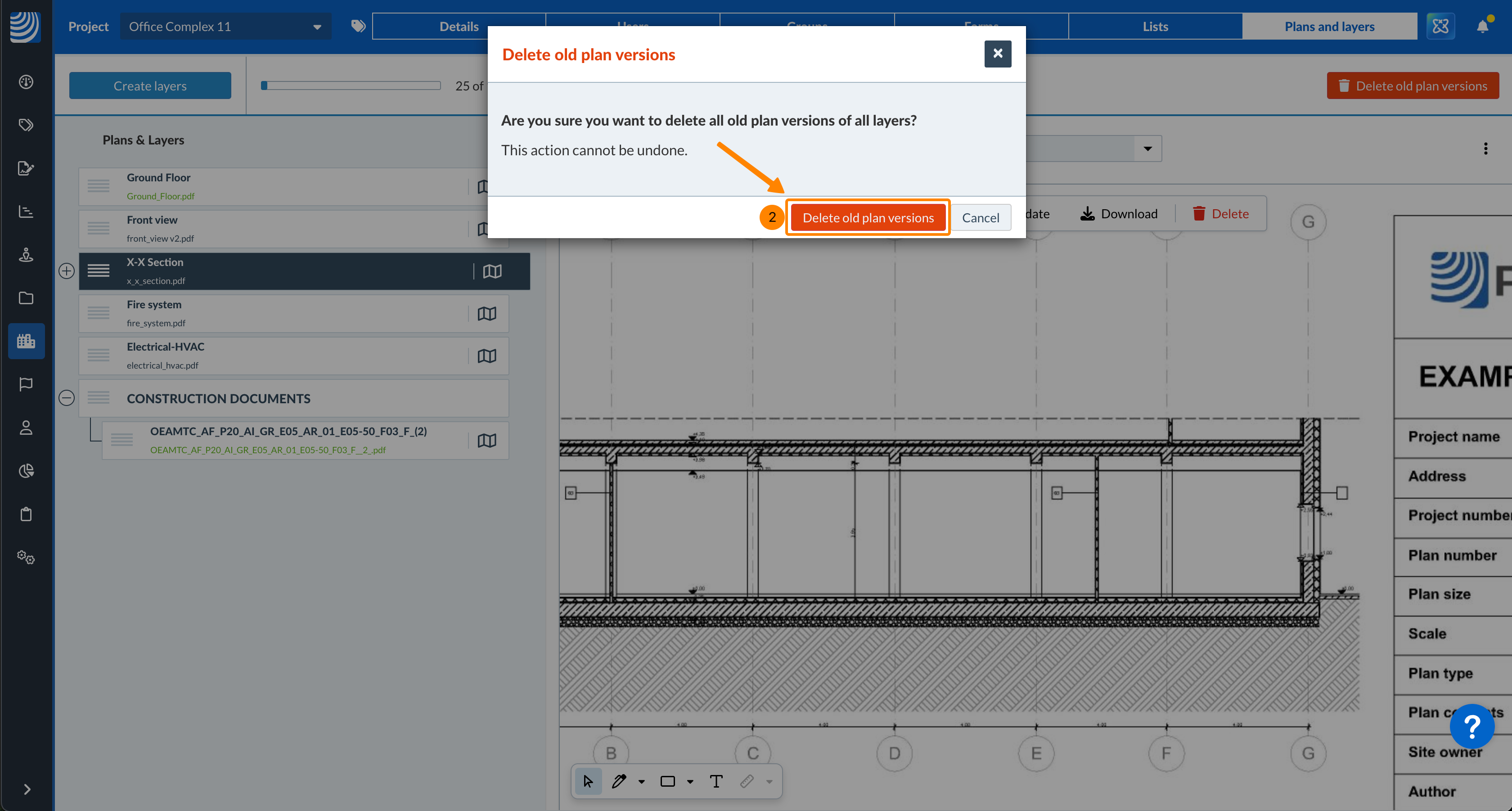 Jeśli są Państwo pewni, że nie potrzebują już starych wersji planów dla żadnej z warstw, mogą Państwo usunąć je wszystkie naraz. Bieżąca wersja każdego planu nie zostanie usunięta.