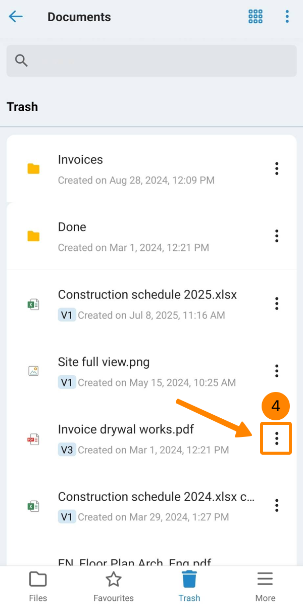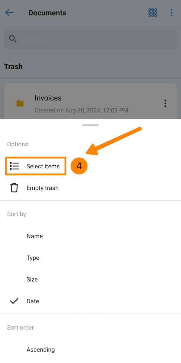 - Proszę dotknąć Przenieś do kosza (na Androidzie proszę najpierw przewinąć w dół)