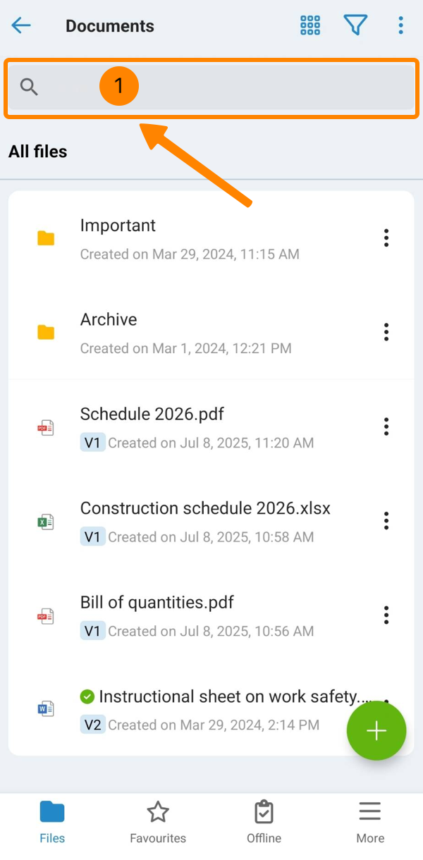 W aplikacji mobilnej wyszukiwanie w Dokumentach obsługuje obecnie tylko wyszukiwanie w bieżącym folderze bez podfolderów.