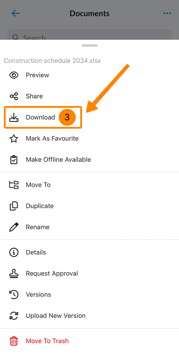 - Proszę dotknąć Pobierz, Udostępnij offline, Przenieś, Przenieś do kosza lub Poproś o zatwierdzenie.