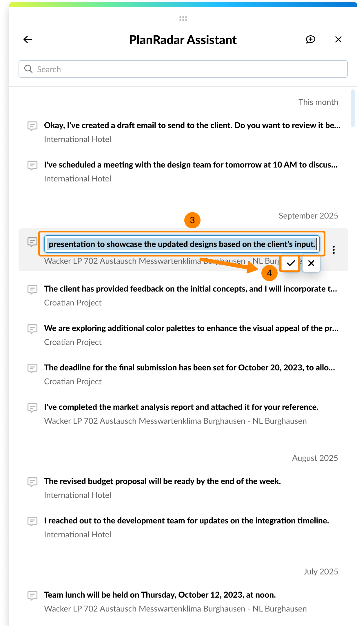 Tylko konta Pro i Enterprise utworzone po lutym 2022 r. kwalifikują się do korzystania z funkcji AI Assistant, które pomagają w wykonywaniu zadań w PlanRadar (takich jak wyszukiwanie Zadania lub wgląd w dokumenty). Jeśli mają Państwo starsze konto Pro lub Enterprise, prosimy skontaktować się z nami, aby uaktualnić swoje konto.