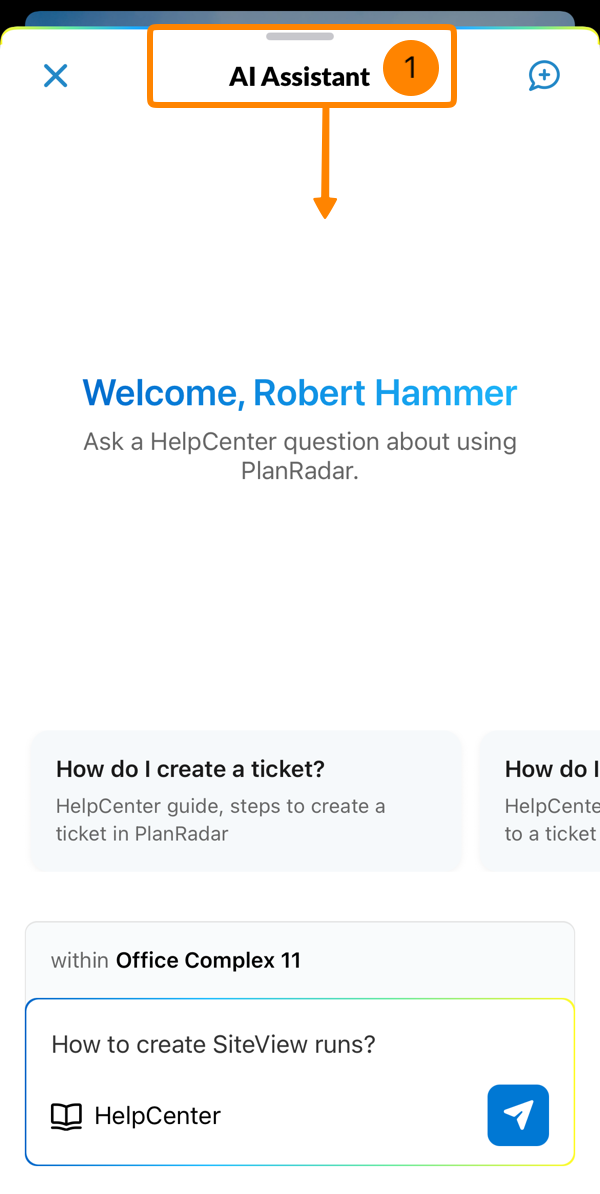 Obecnie asystent AI w aplikacji mobilnej obsługuje tylko pytania HelpCenter dotyczące korzystania z PlanRadar. Zaawansowane funkcje AI związane z Państwa projektami i zgłoszeniami zostaną dodane do aplikacji mobilnej w późniejszym terminie.